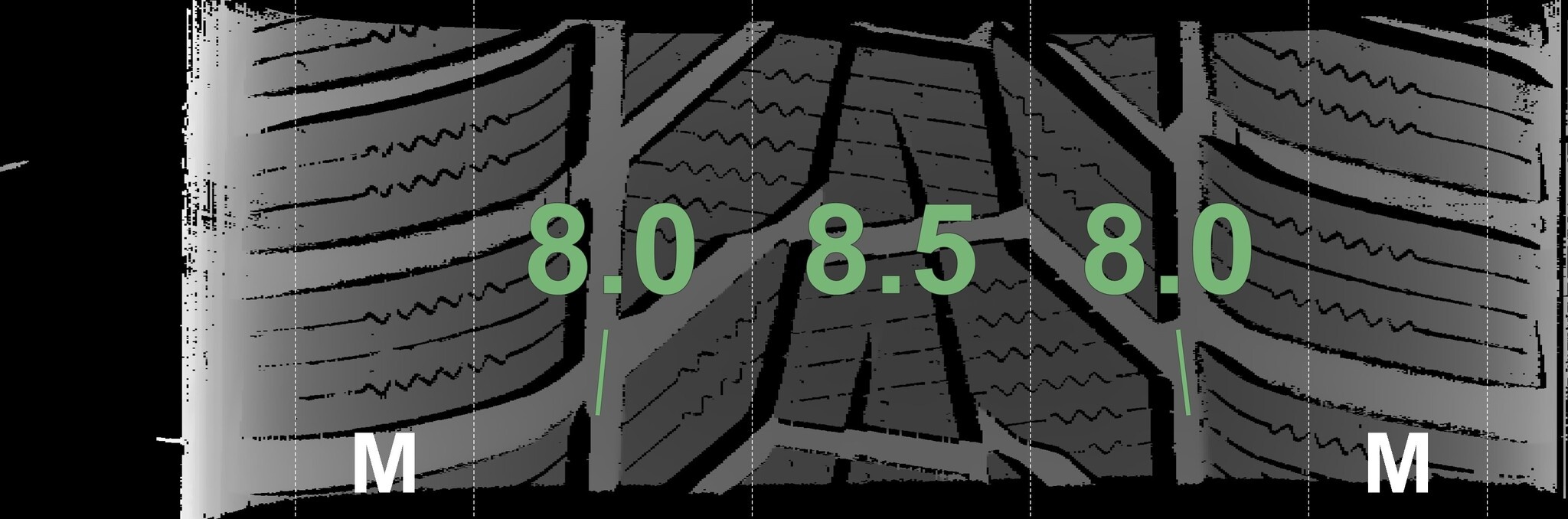Die gemessenen Profiltiefen und Details zu den Felgen sind oben abgebildet.