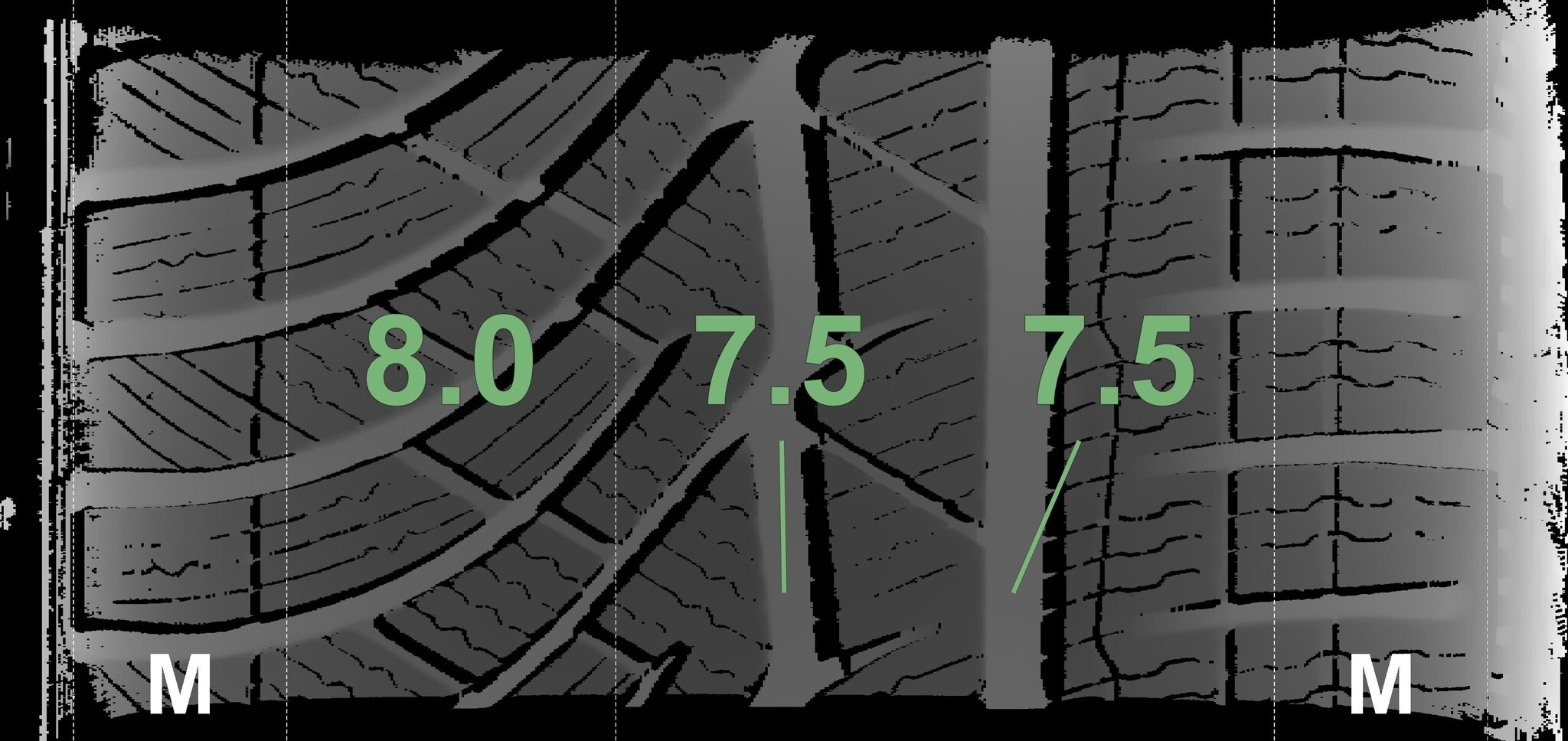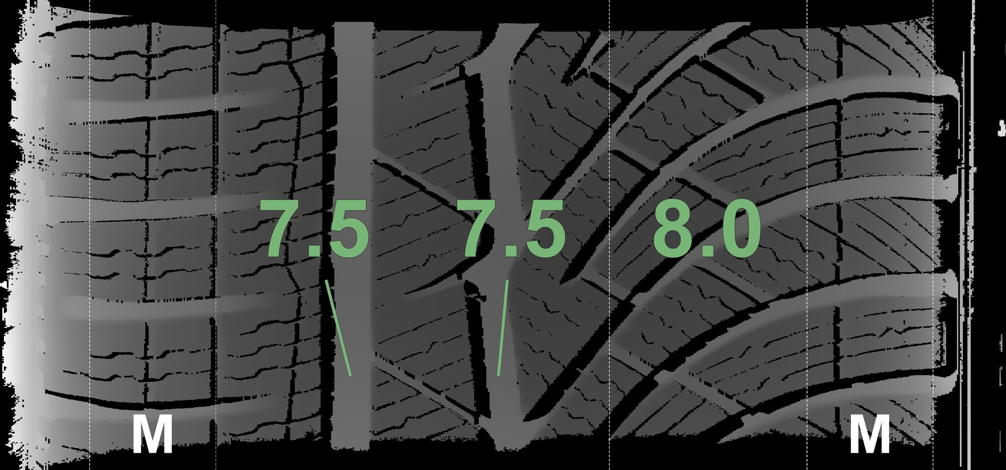Die gemessenen Profiltiefen und Details zu den Felgen sind oben abgebildet.