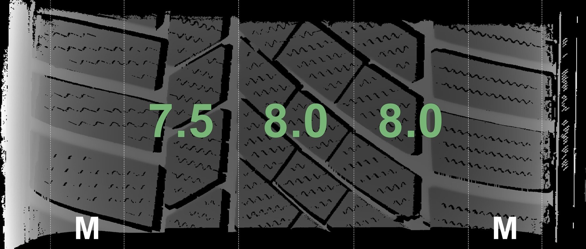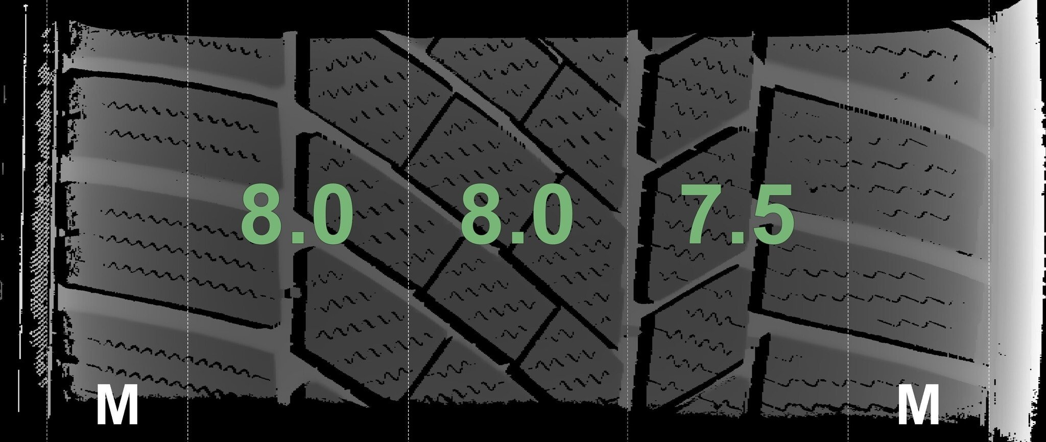 Die gemessenen Profiltiefen und Details zu den Felgen sind oben abgebildet.