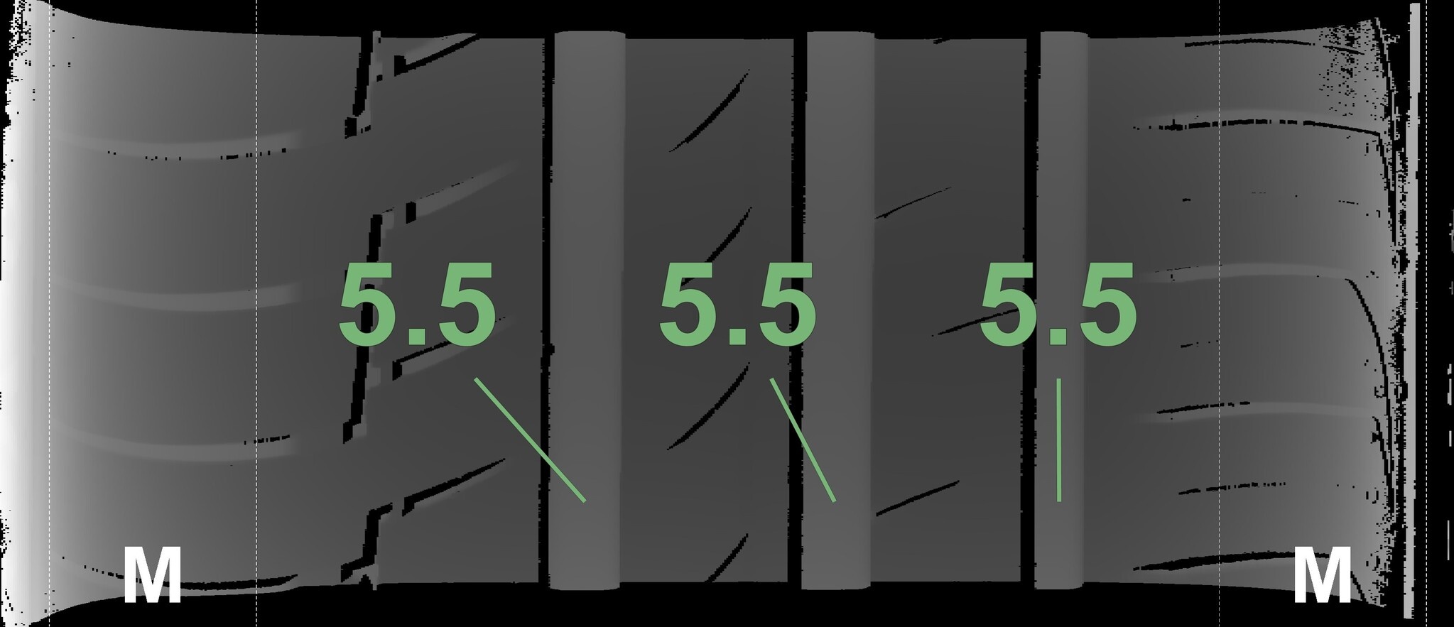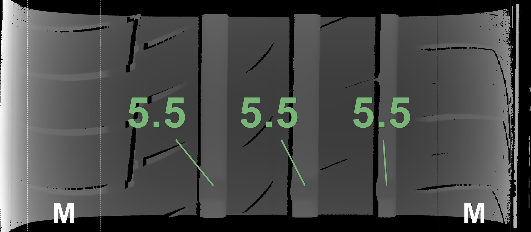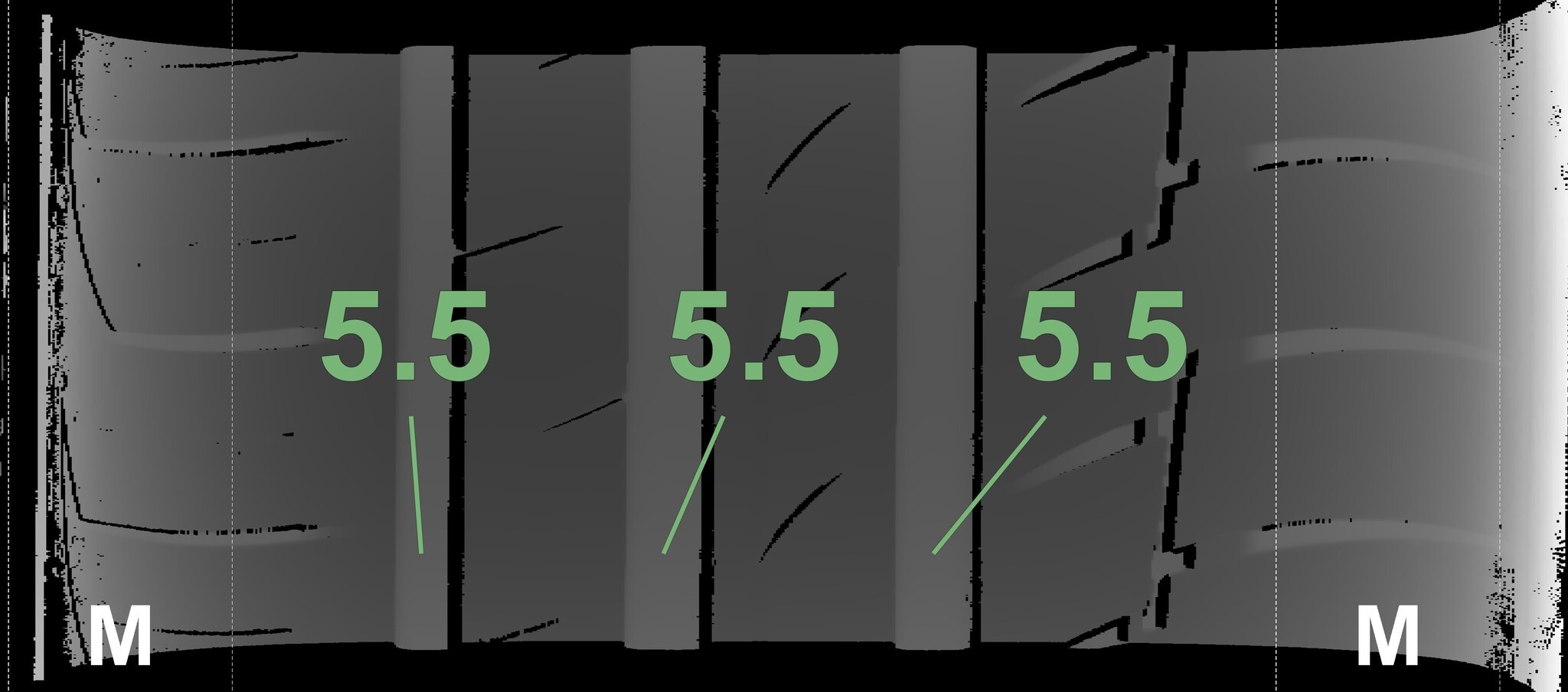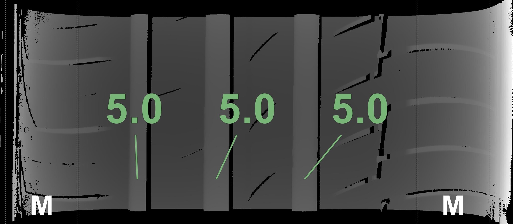 Die gemessenen Profiltiefen und Details zu den Felgen sind oben abgebildet.
