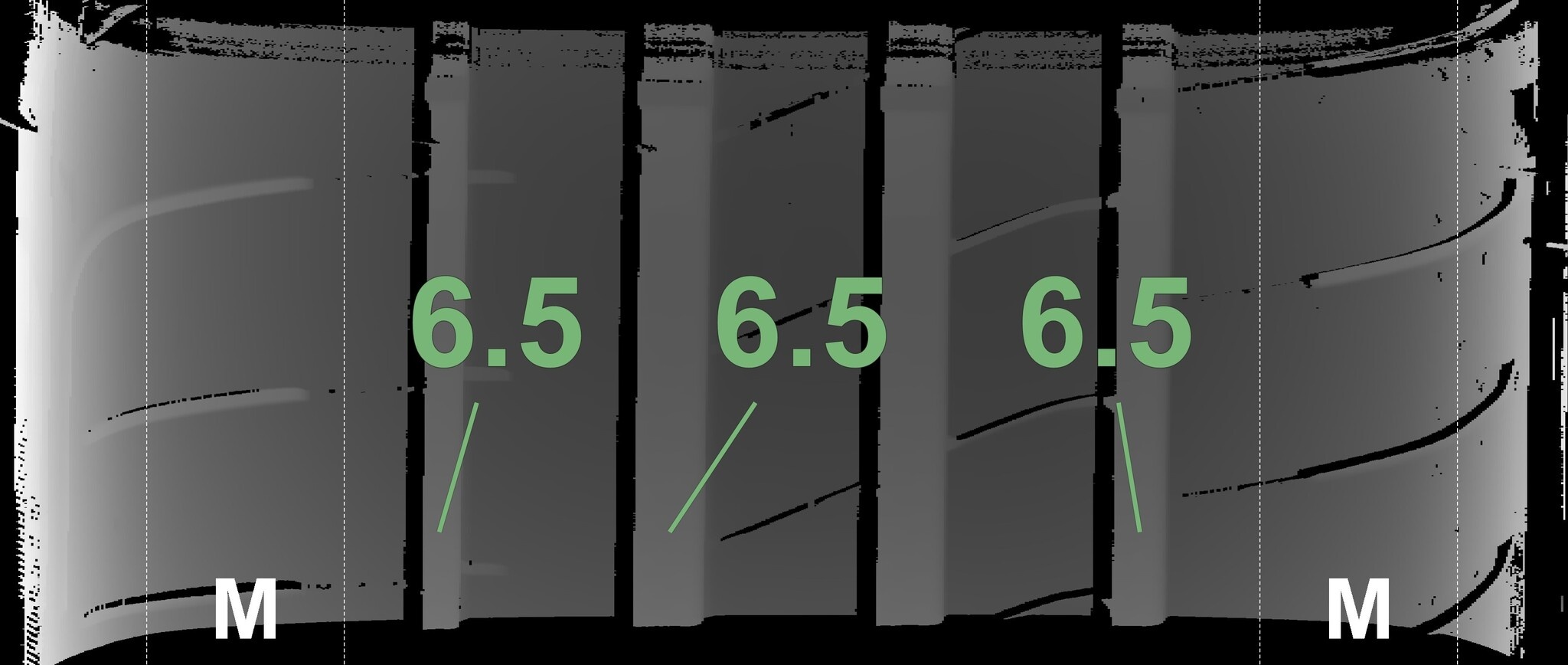 Die gemessenen Profiltiefen und die Details der Felgen sind oben aufgeführt.