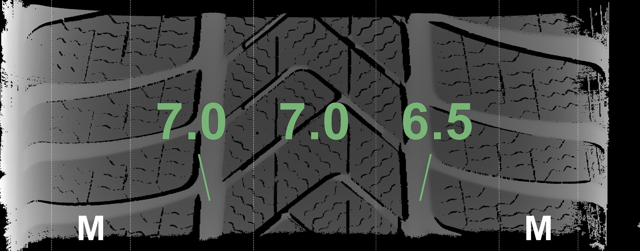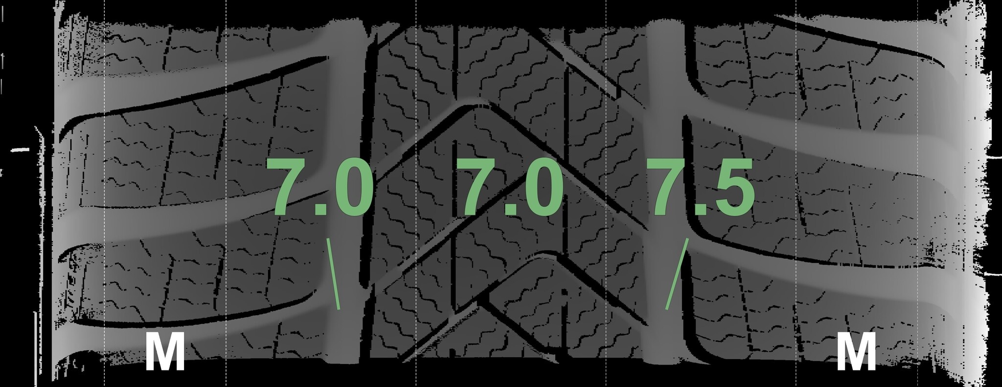 Die gemessenen Profiltiefen und Details zu den Felgen sind oben abgebildet.