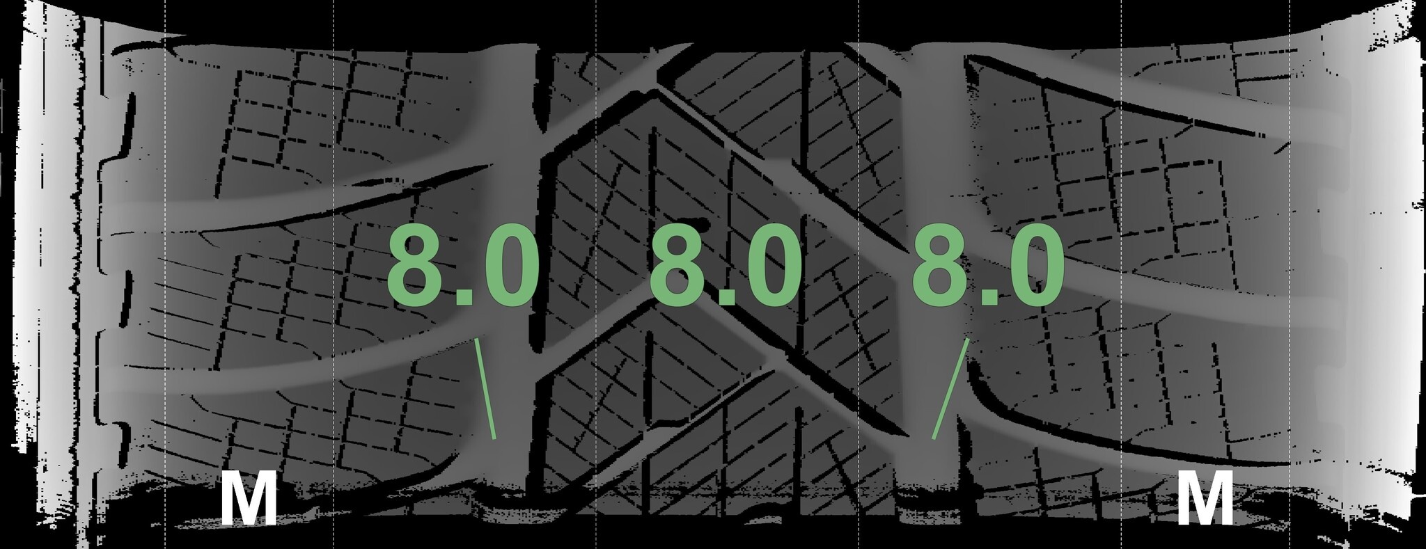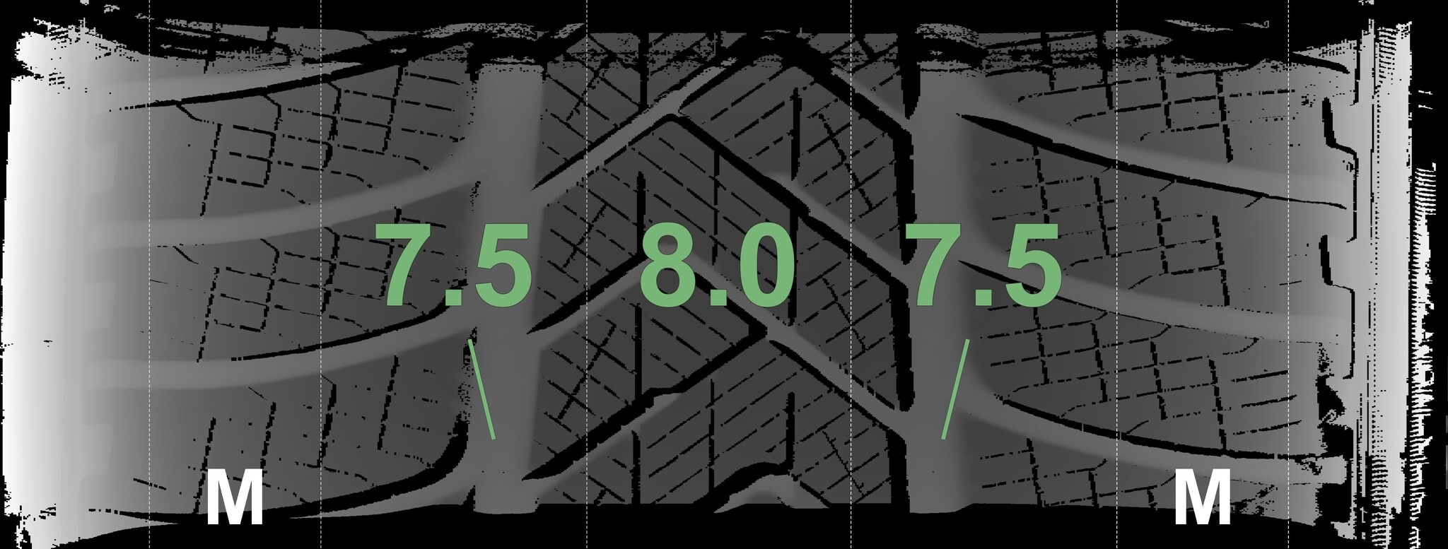 Die gemessenen Profiltiefen und die Details der Felgen sind oben angegeben.