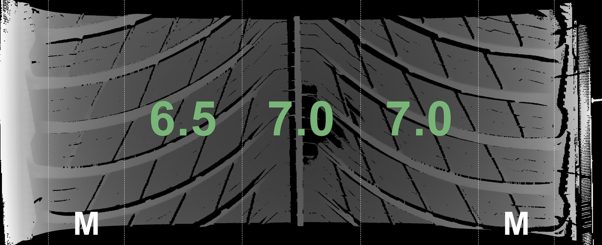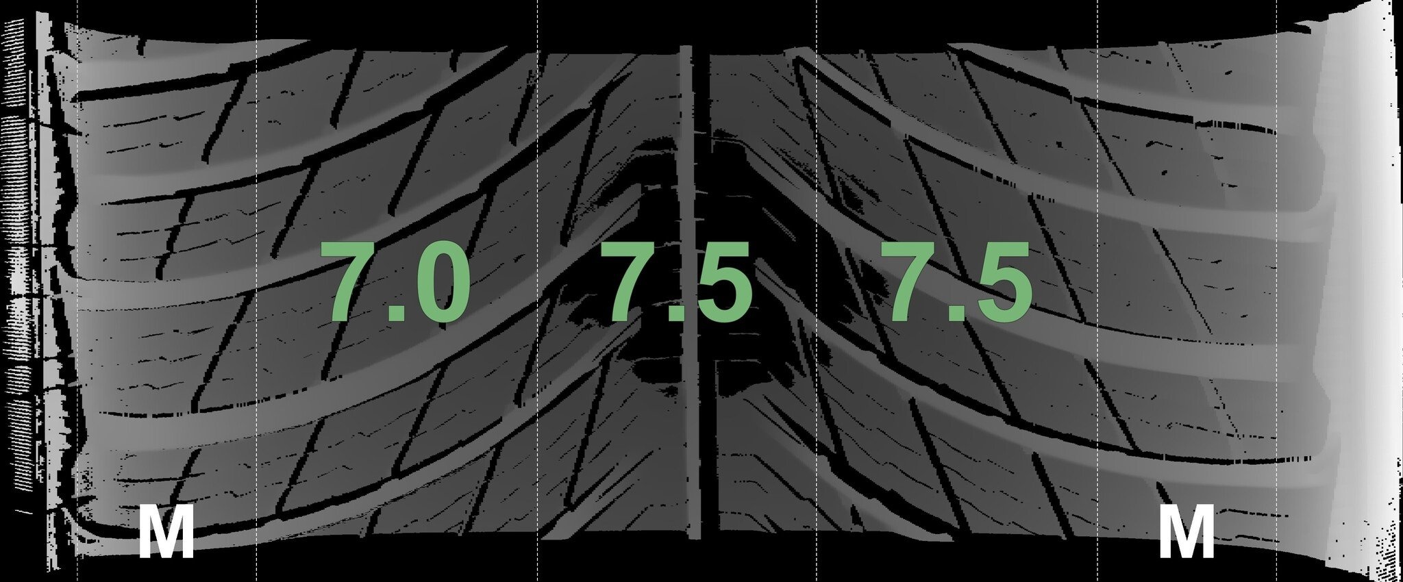 Die gemessenen Profiltiefen und Details zu den Felgen sind oben abgebildet.