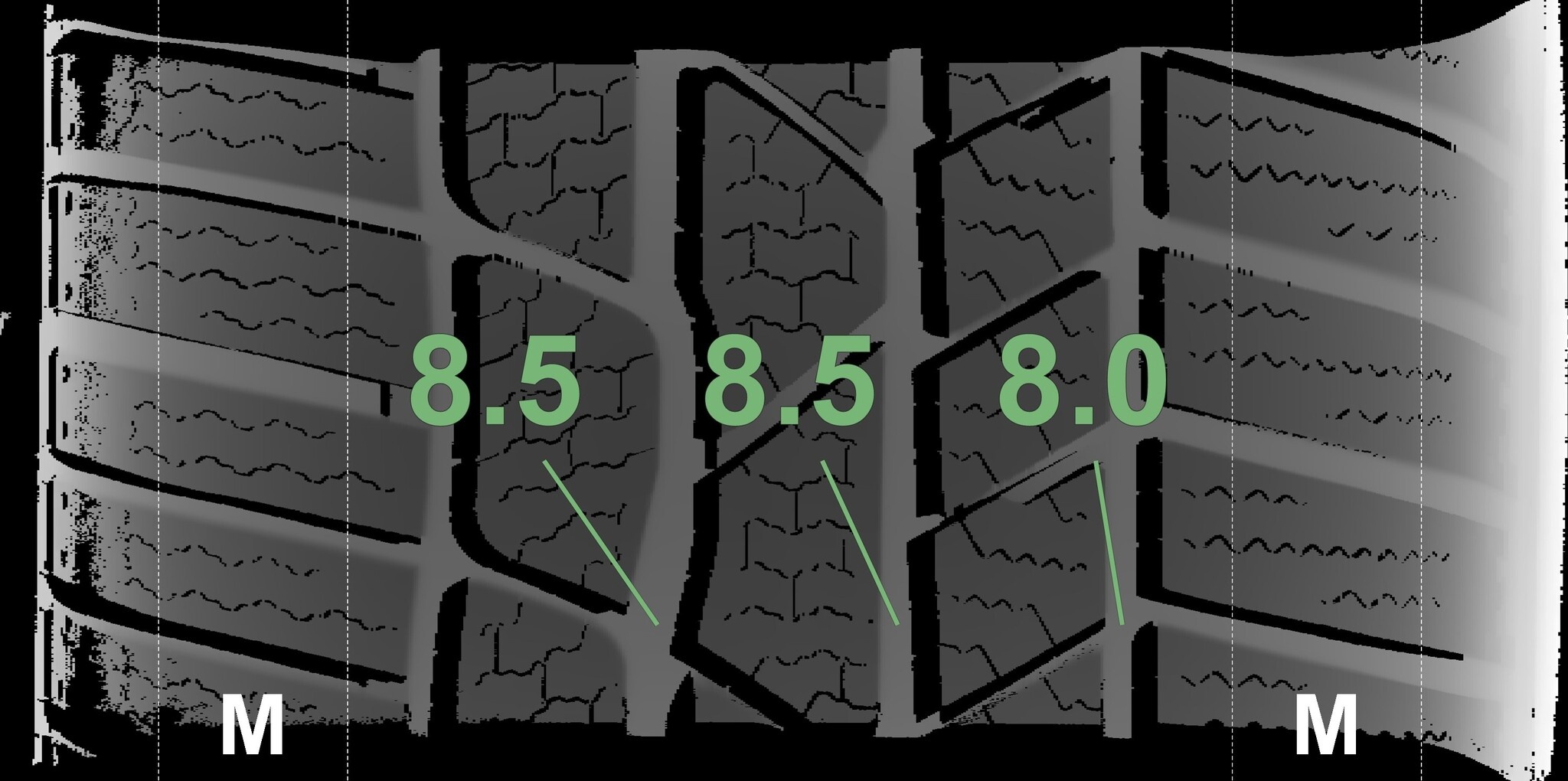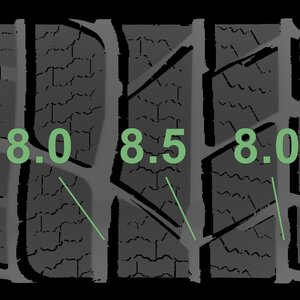 | Zustand | Profiltiefe | DOT | Vorderachse Rechts | Demo Noppen noch sichtbar | 8.3 mm | 4017 |