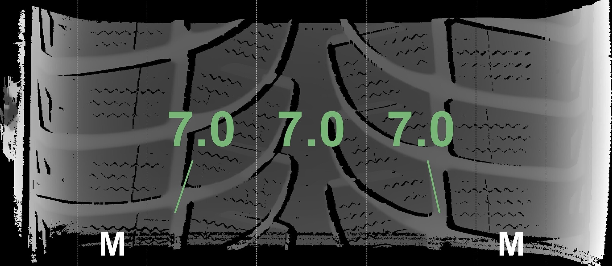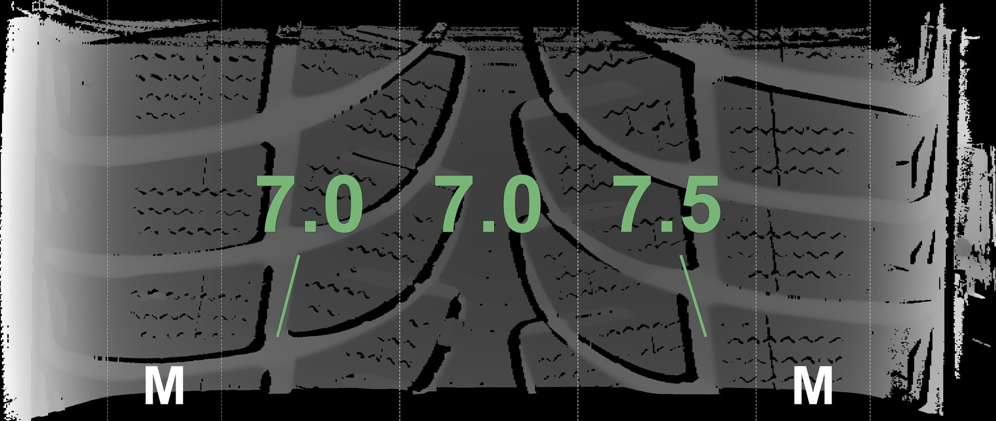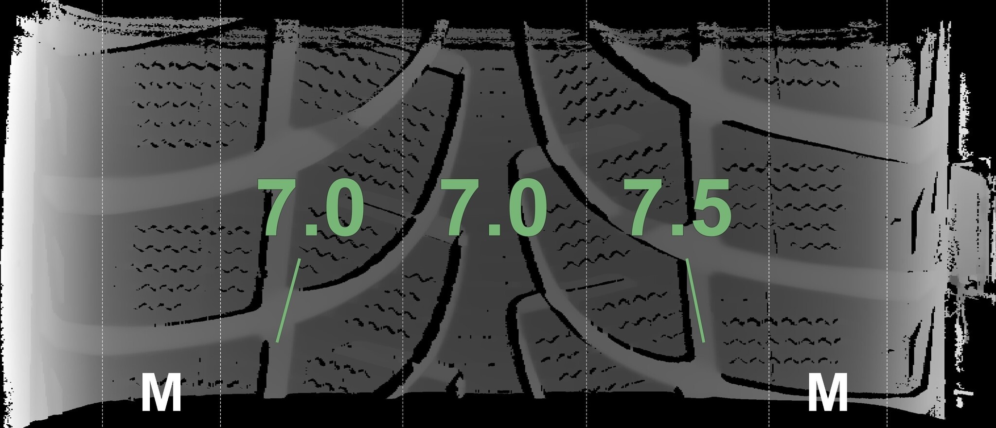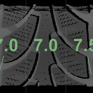Die gemessenen Profiltiefen und die Details der Felgen sind oben dargestellt.