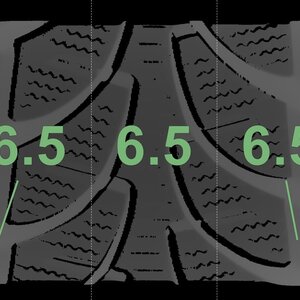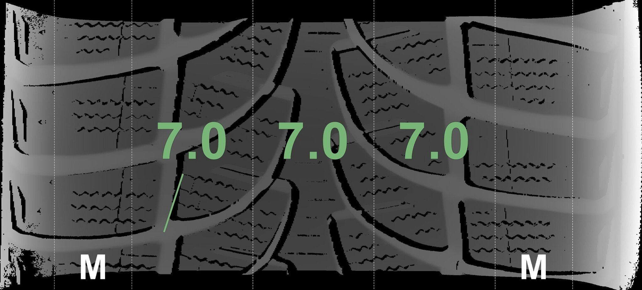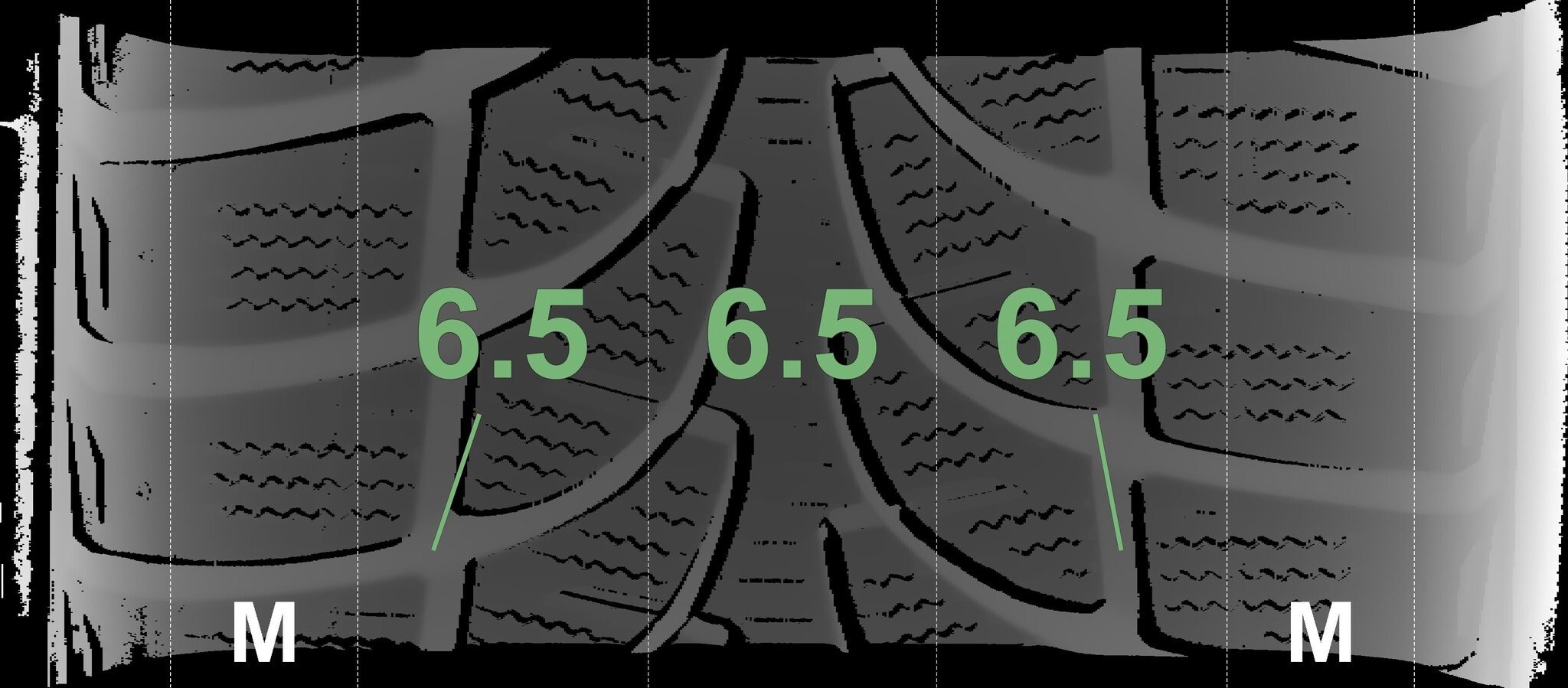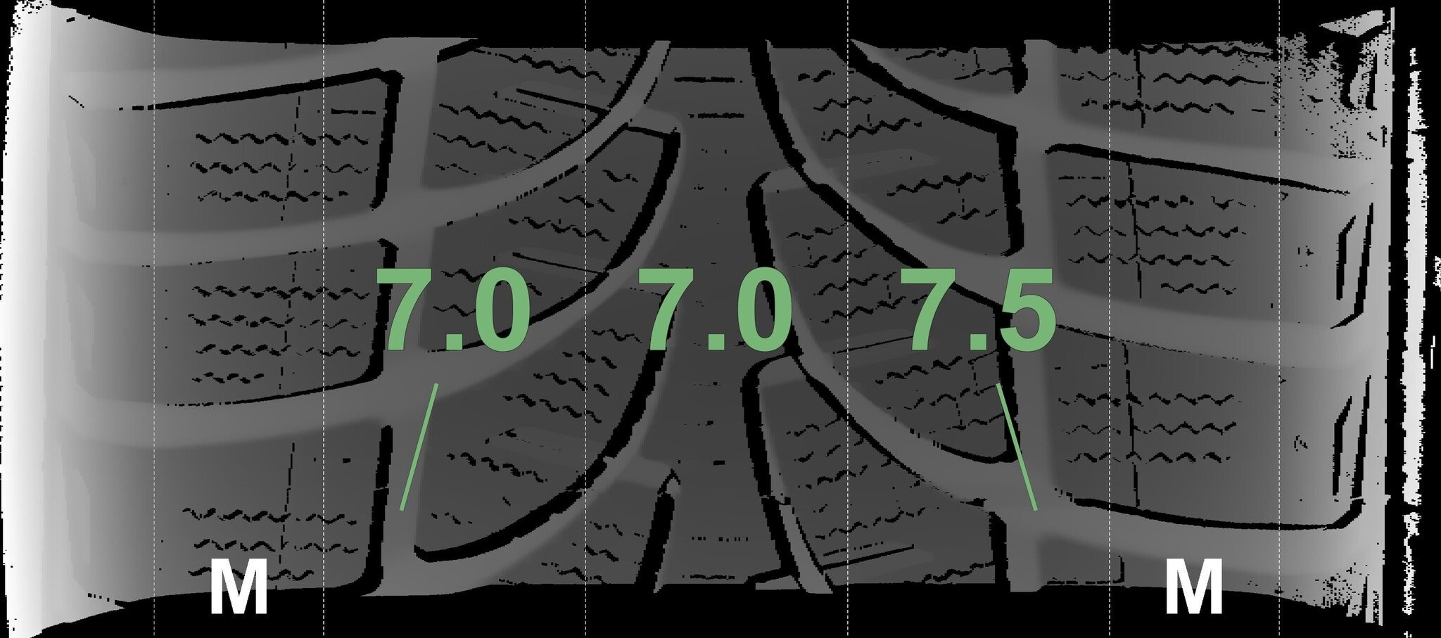 Die gemessenen Profiltiefen und die Details der Felgen sind oben angezeigt.