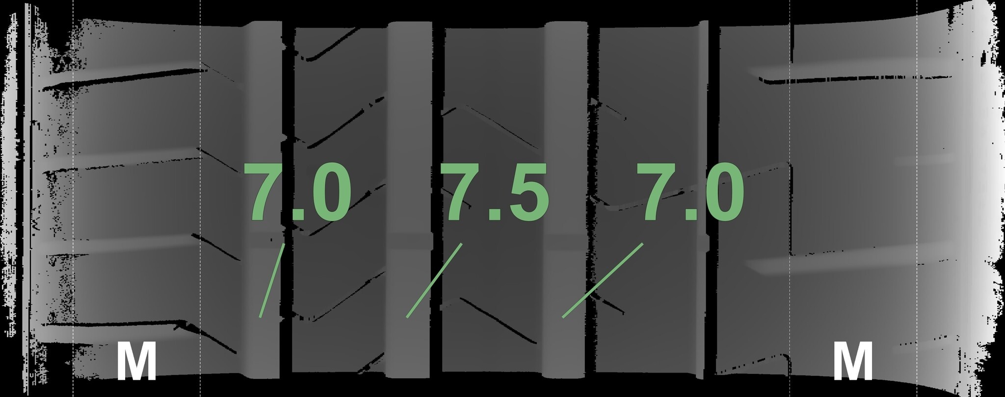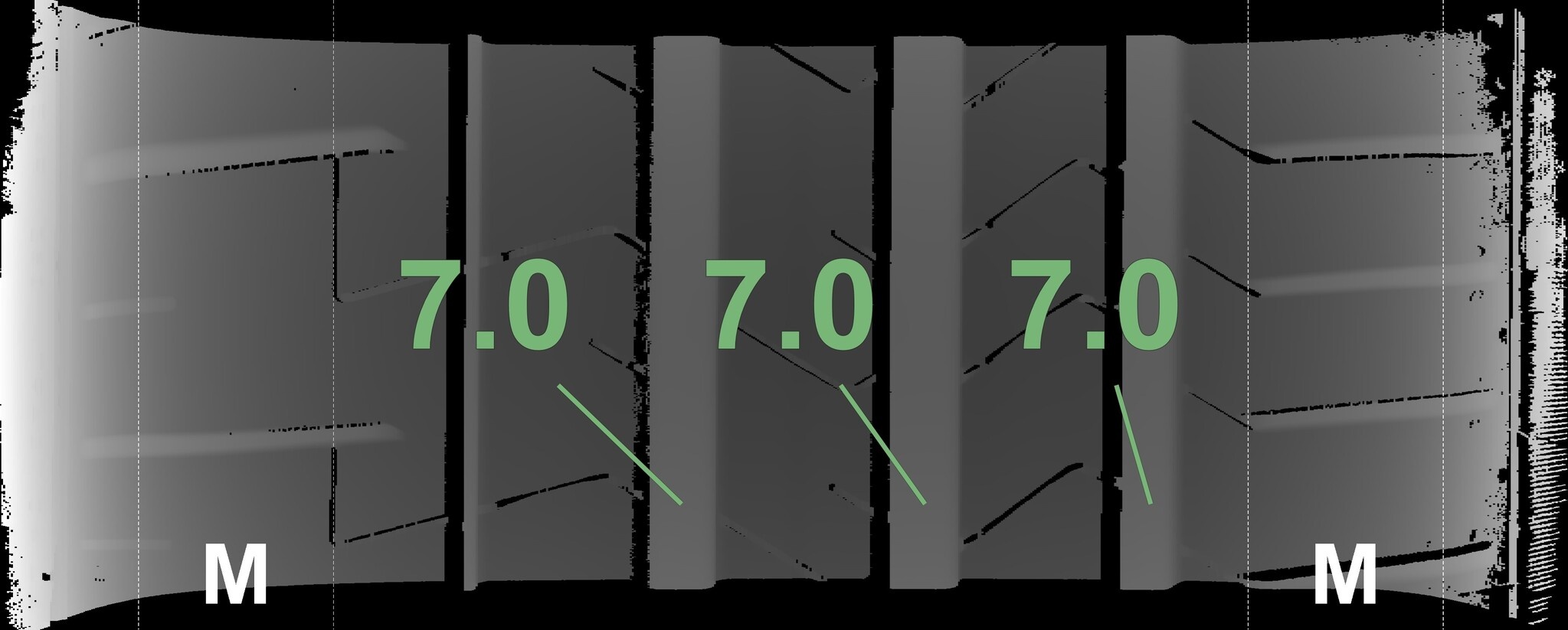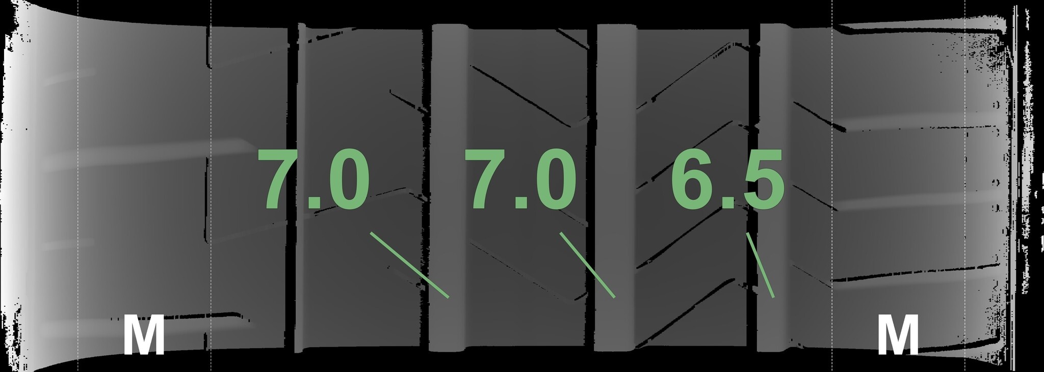 Die gemessenen Profiltiefen und Details zu den Felgen sind oben abgebildet.