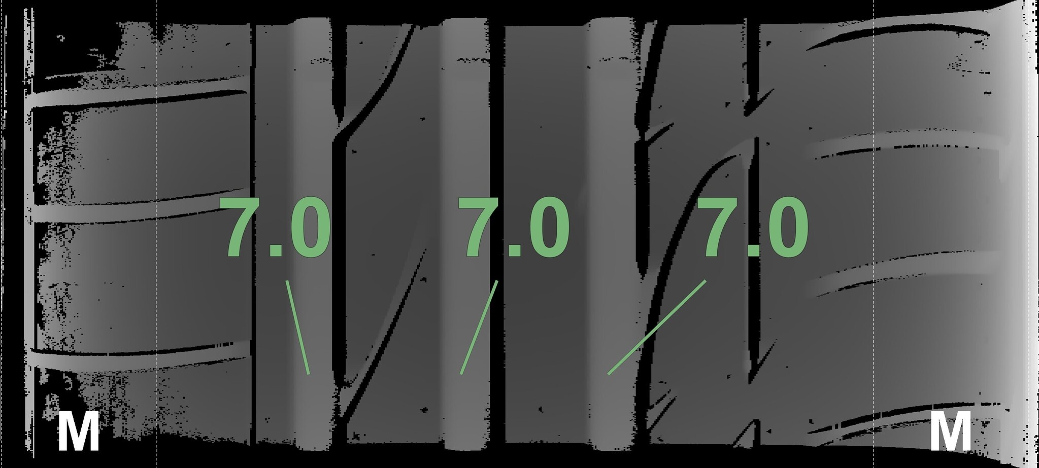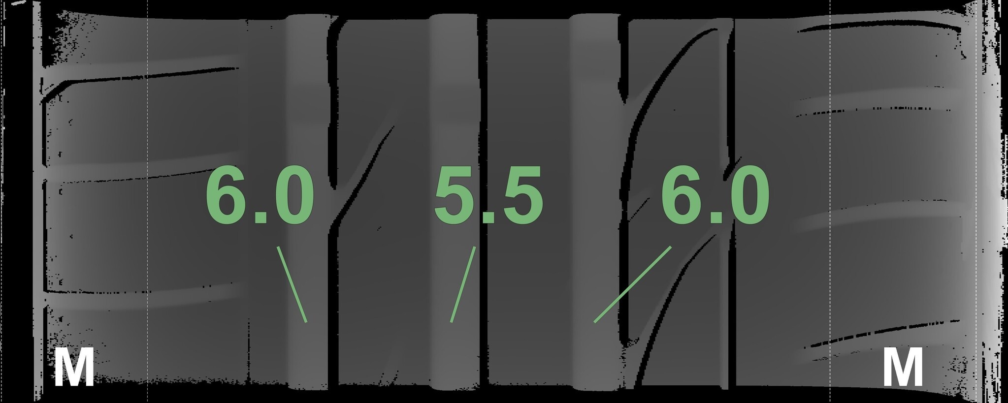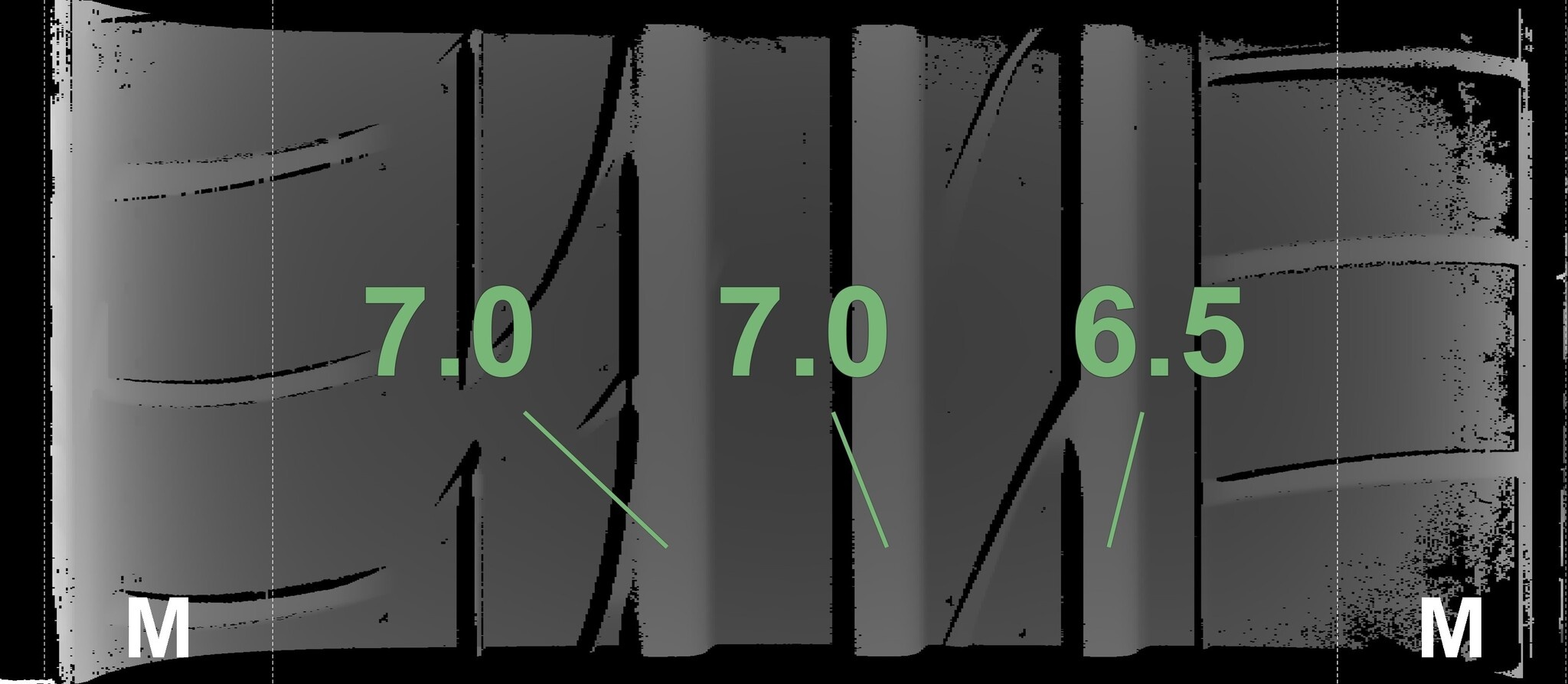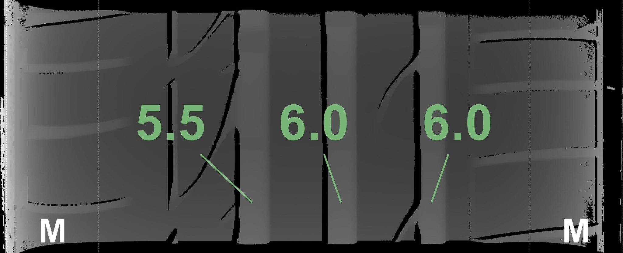 Die gemessenen Profiltiefen und Details zu den Felgen sind oben abgebildet.