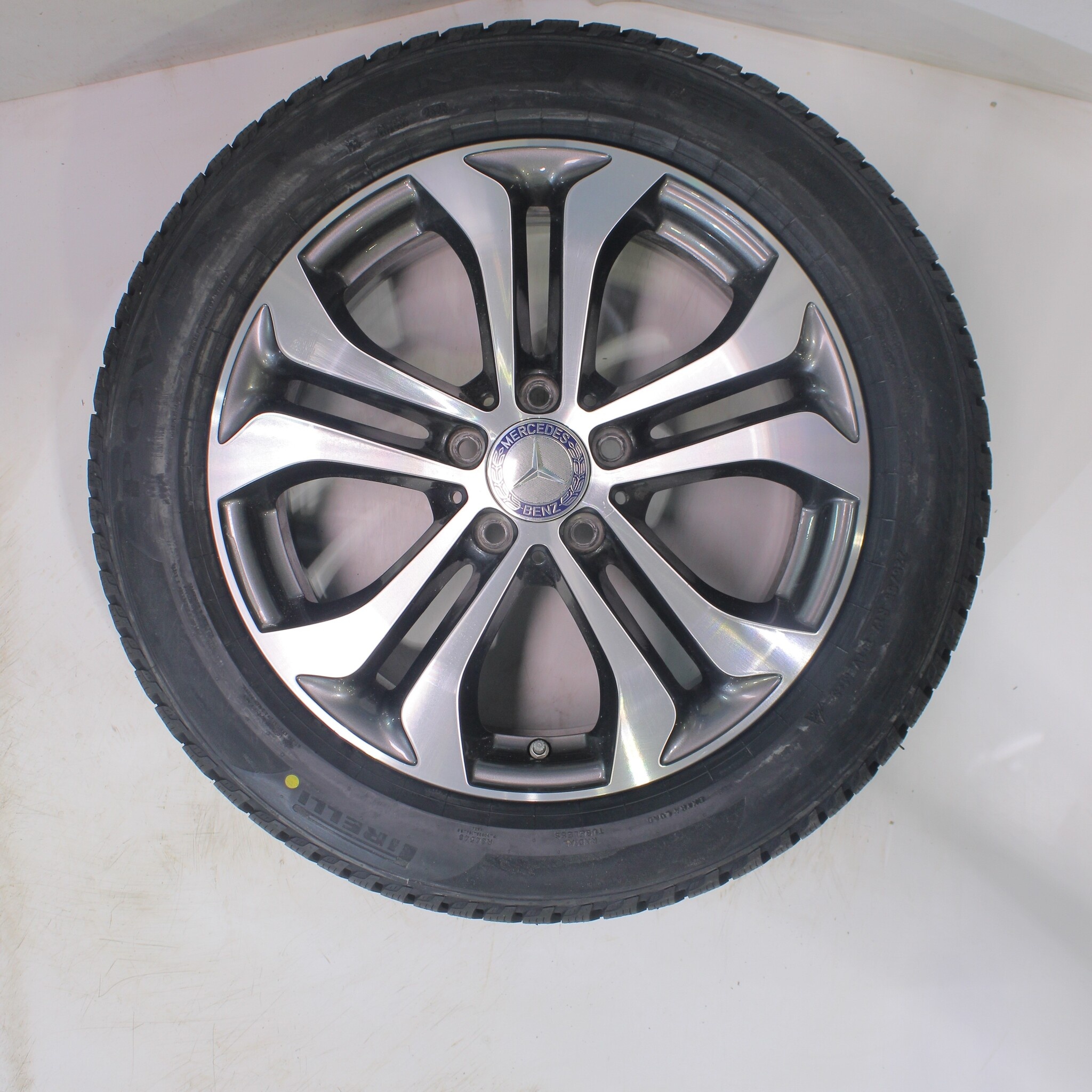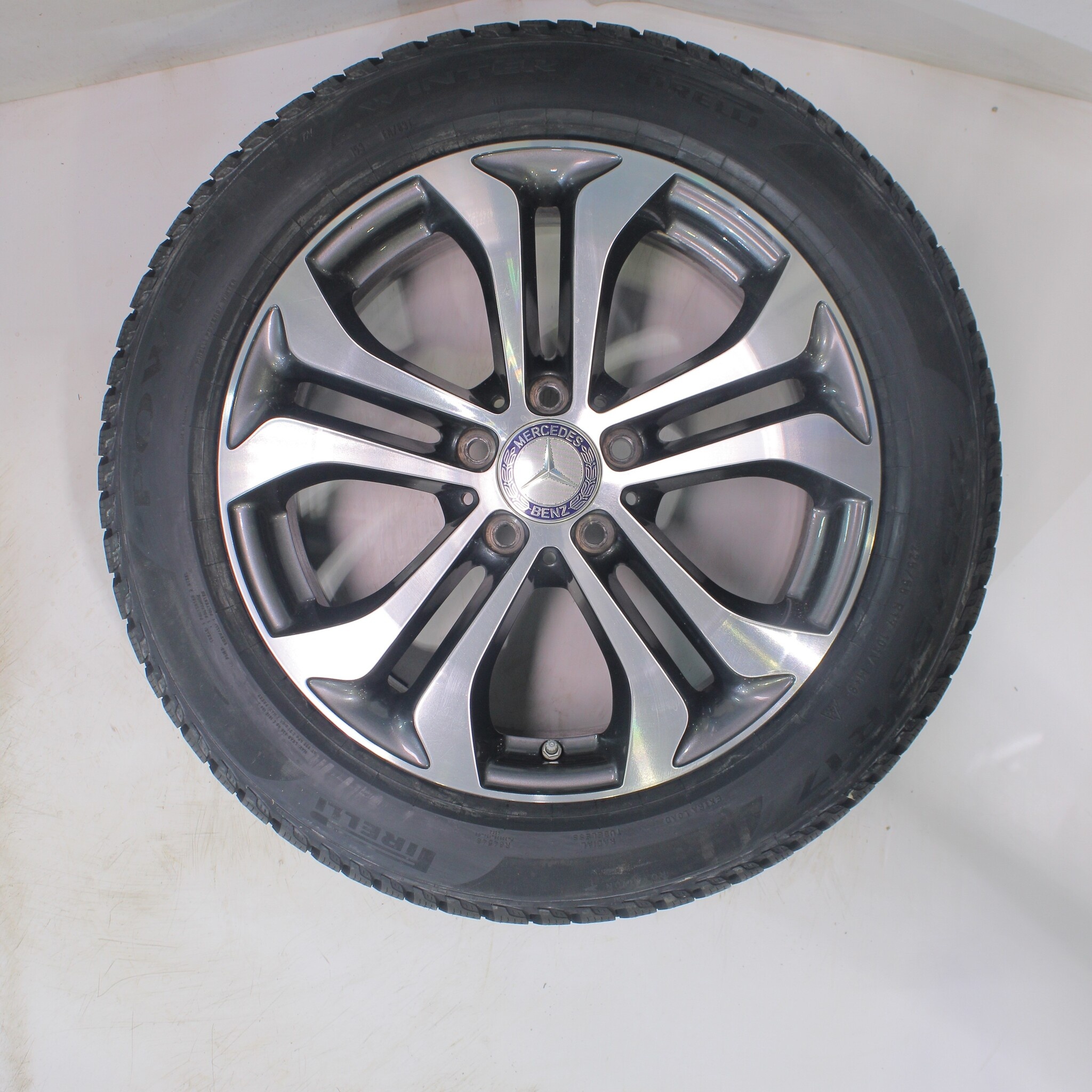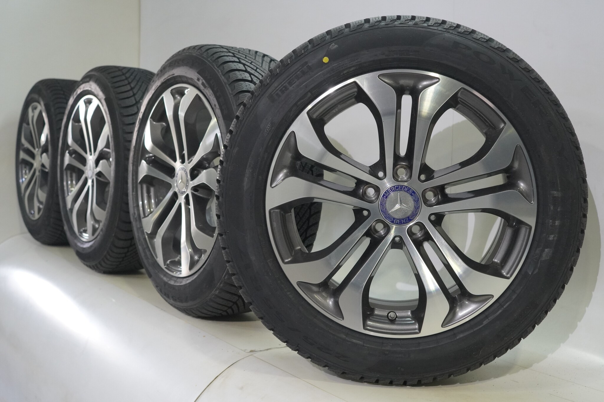 Original Radsatz von Mercedes, 17 Zoll Felgen mit Pirelli Powergy Winterkompletträder. Diese Felgen sind Original Felgen der Marke Mercedes und geeignet für: Mercedes V-Klasse W447.