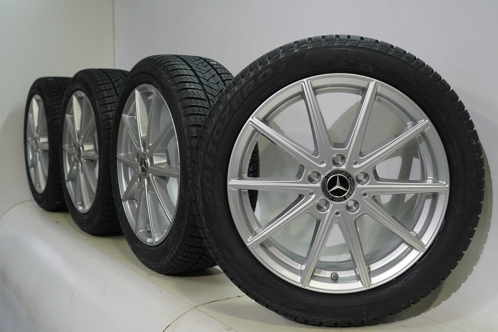 Original Radsatz von Mercedes, 18 Zoll Felgen mit Pirelli Winter Sottozero 3 Winterkompletträder. Diese Felgen sind Original Felgen der Marke Mercedes und geeignet für: Mercedes V-Klasse W447.