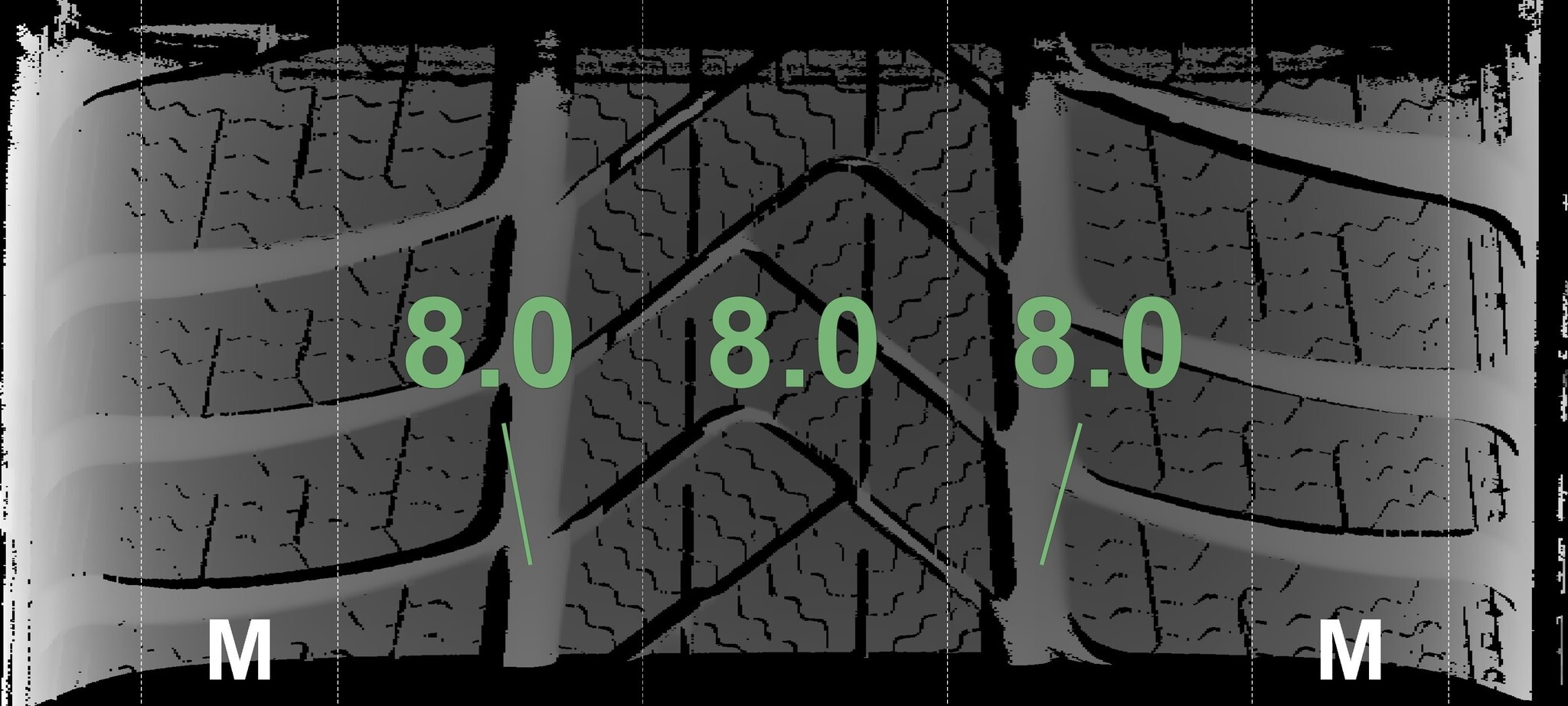 | Zustand | Profiltiefe | DOT | Vorderachse Links | Neu | 8.0 mm | 3824 |