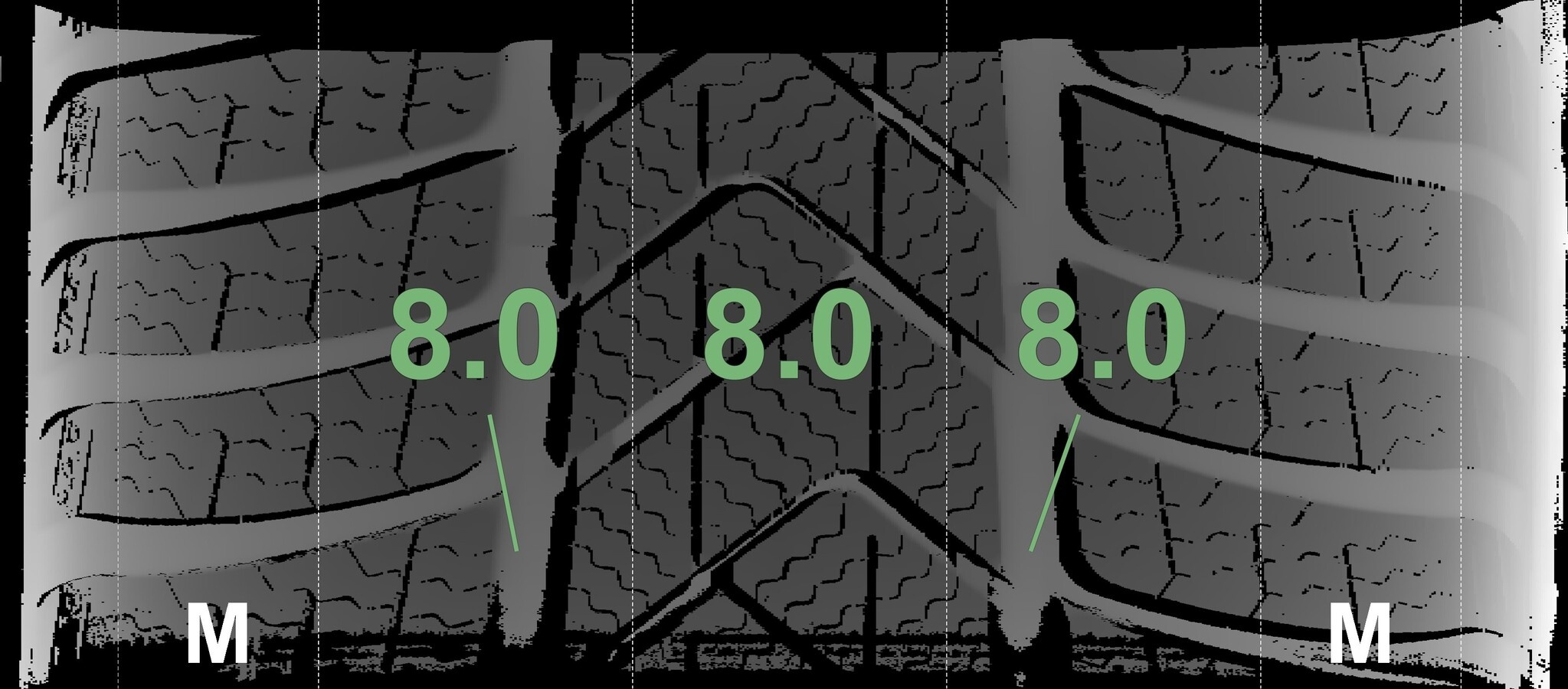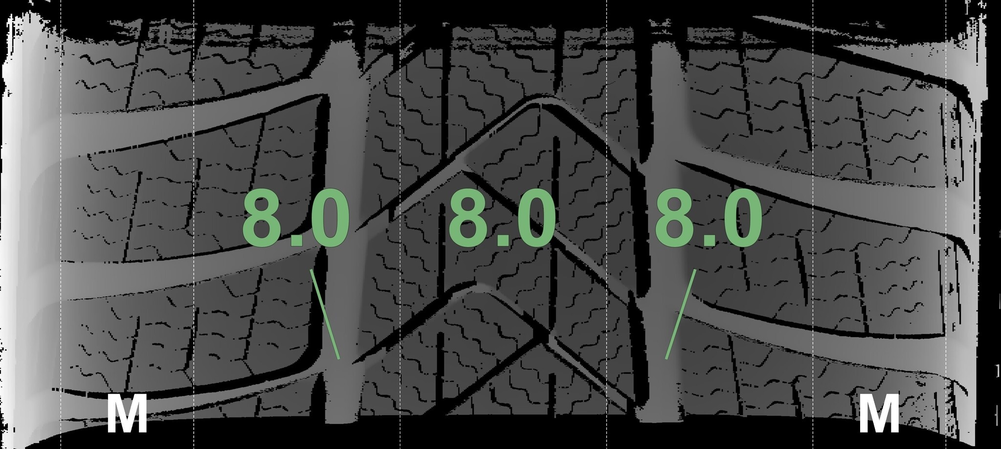 Die gemessenen Profiltiefen und die Details der Felgen sind oben angegeben.
