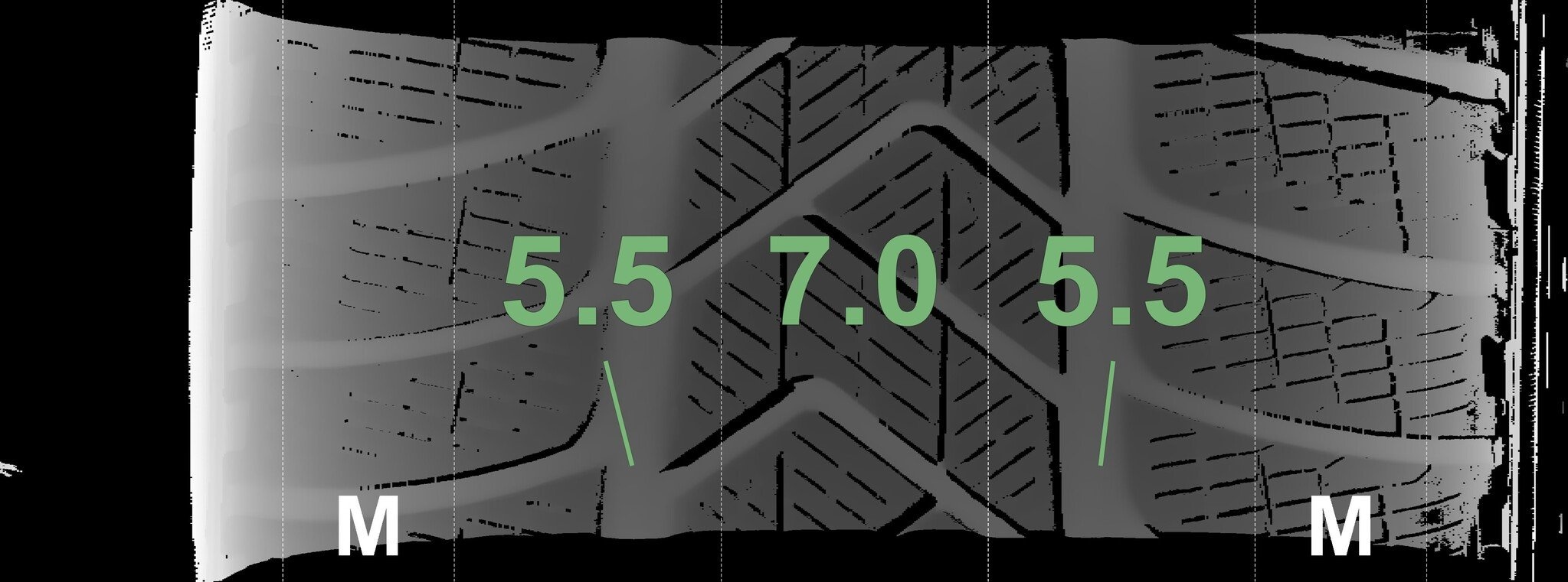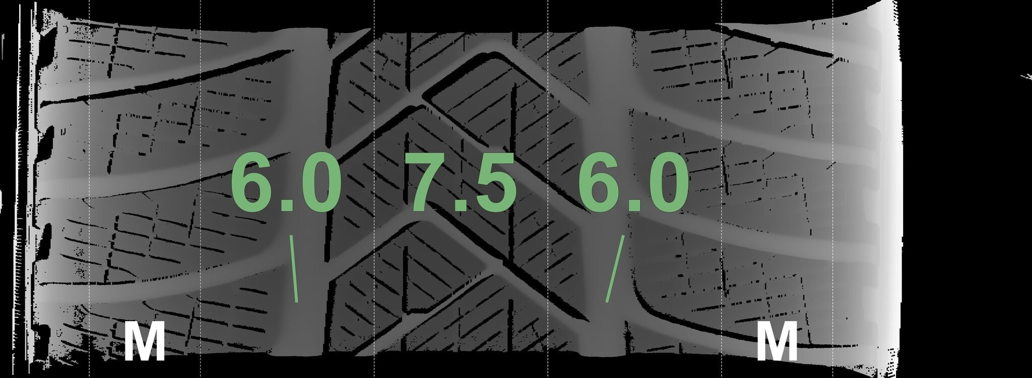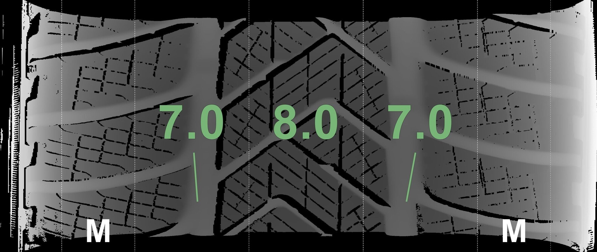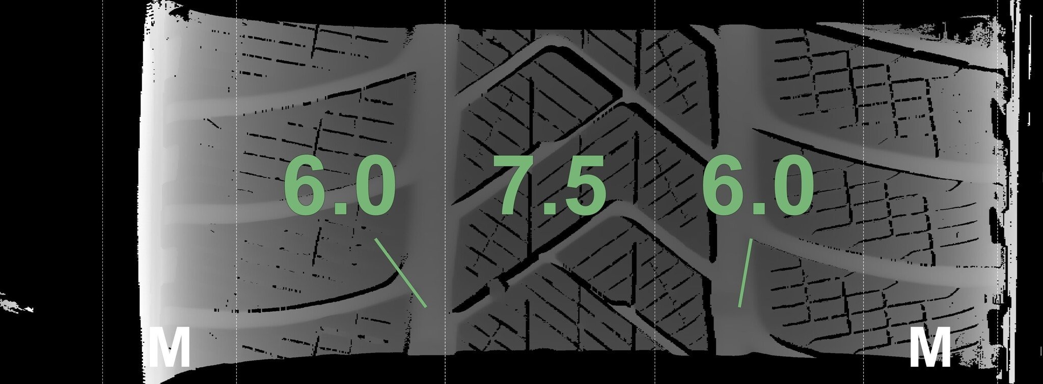 Die gemessenen Profiltiefen und die Details der Felgen sind oben dargestellt.