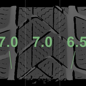 Die gemessenen Profiltiefen und Details der Felgen sind oben abgebildet.