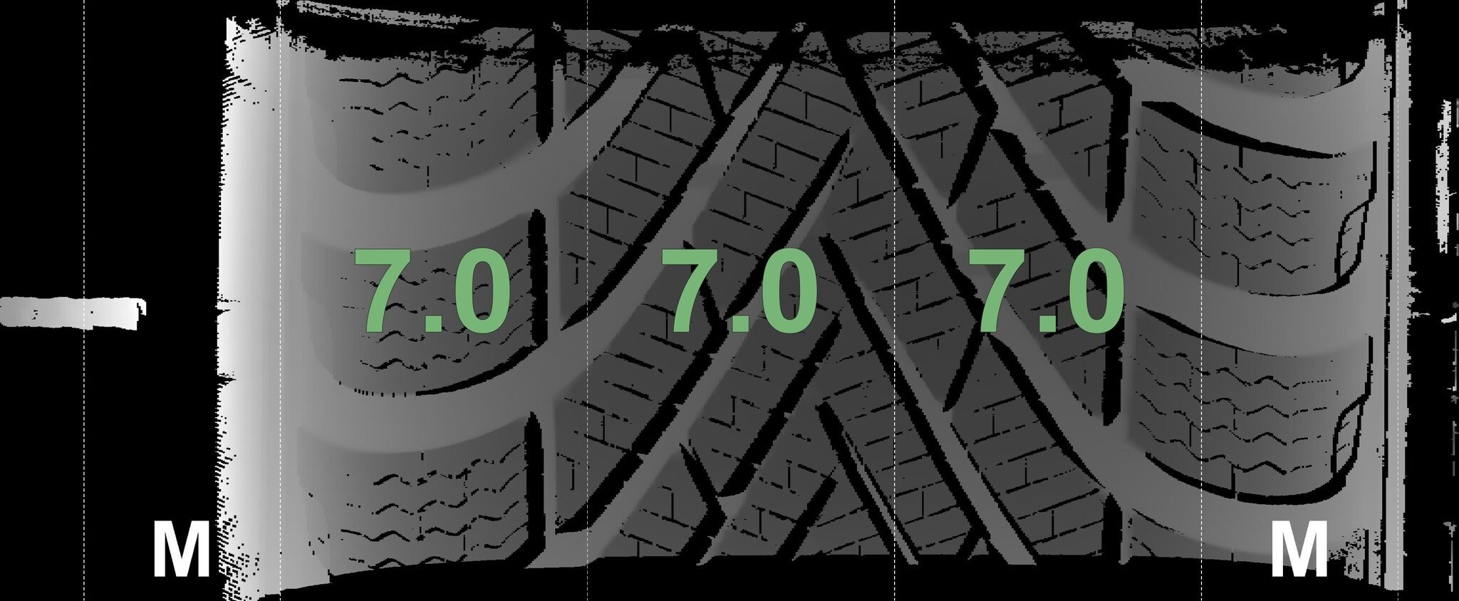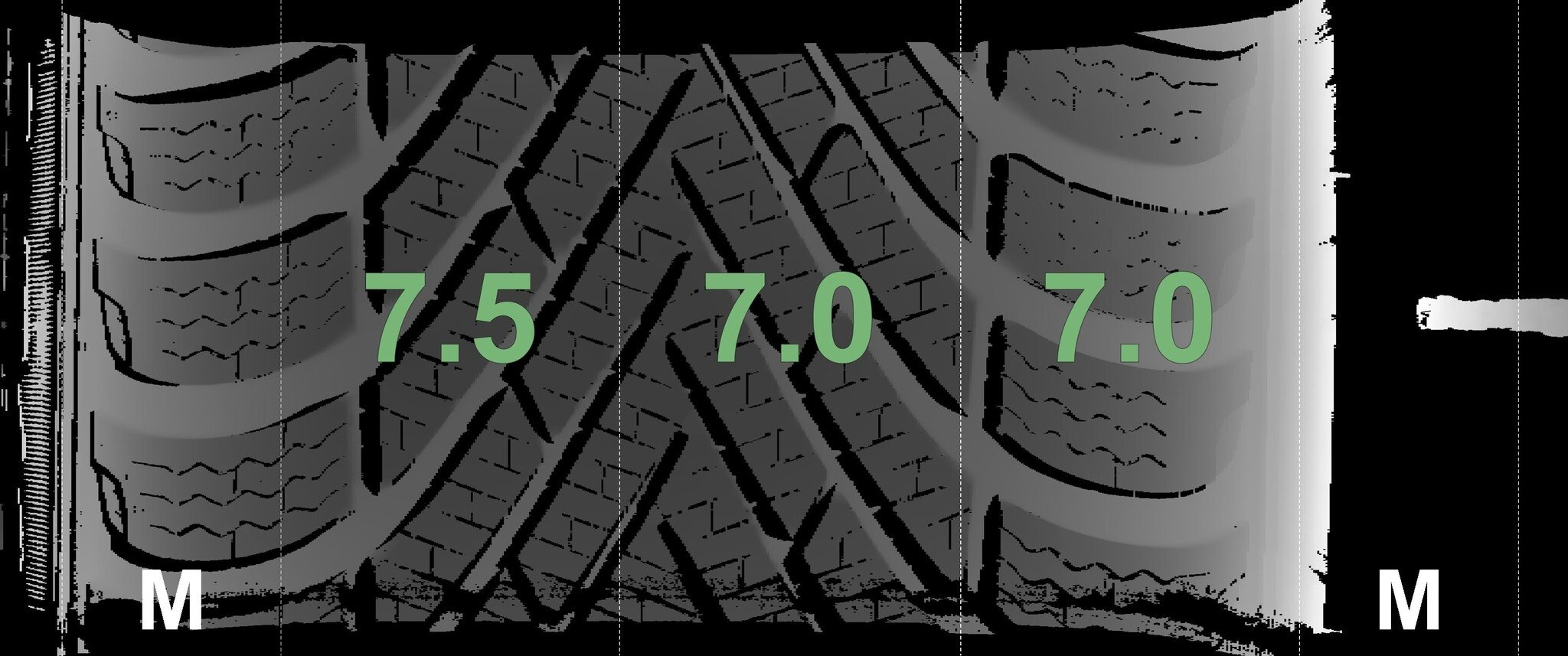 | Zustand | Profiltiefe | DOT | Vorderachse Links | Neu | 7.0 mm | 2719 |