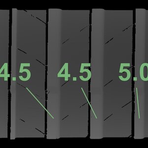 Die gemessenen Profiltiefen und Details der Felgen sind oben abgebildet.
