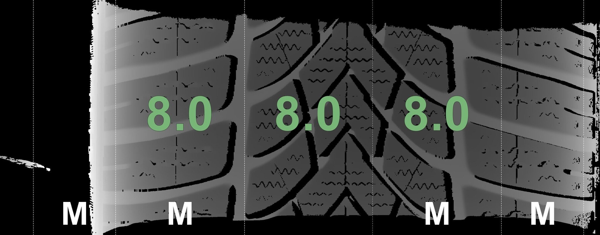 | Zustand | Profiltiefe | DOT | Vorderachse Links | Gebraucht | 8.0 mm | 2723 |