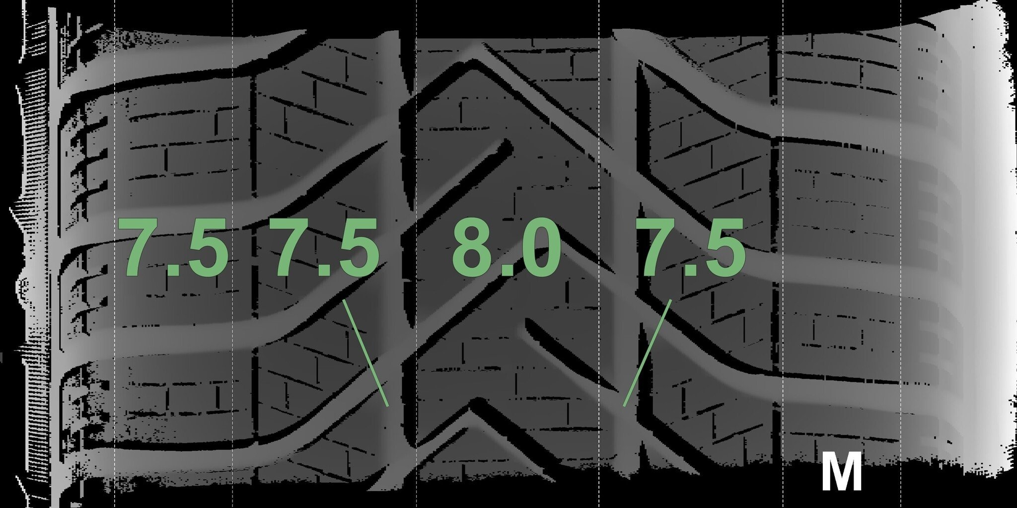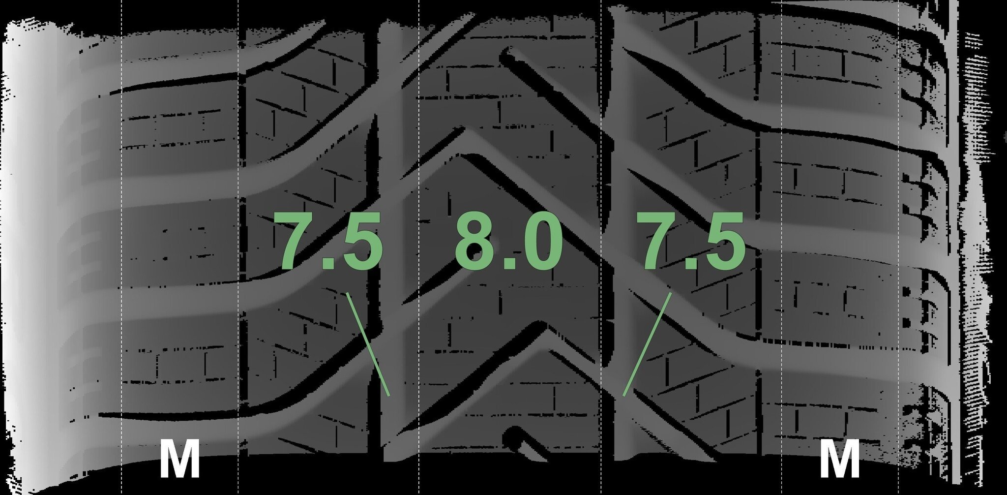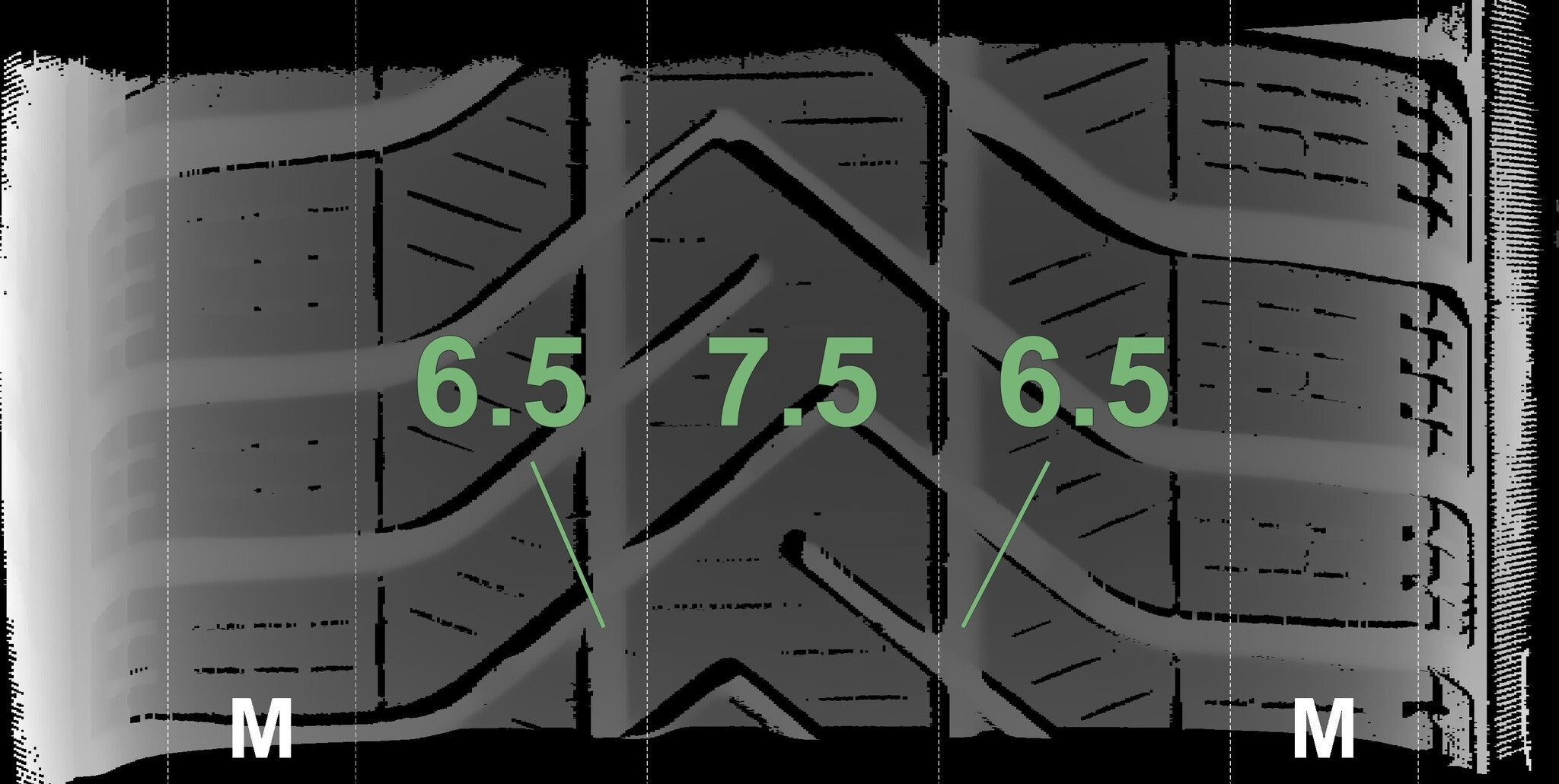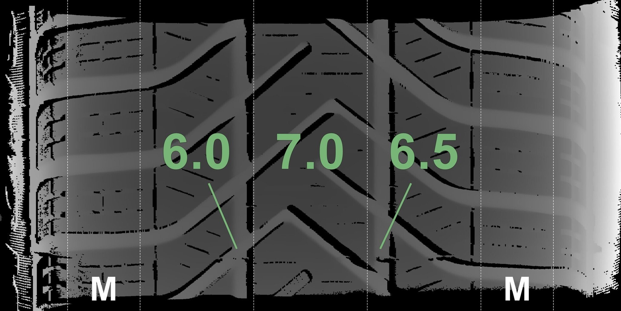 Die gemessenen Profiltiefen und Details der Felgen sind oben abgebildet.