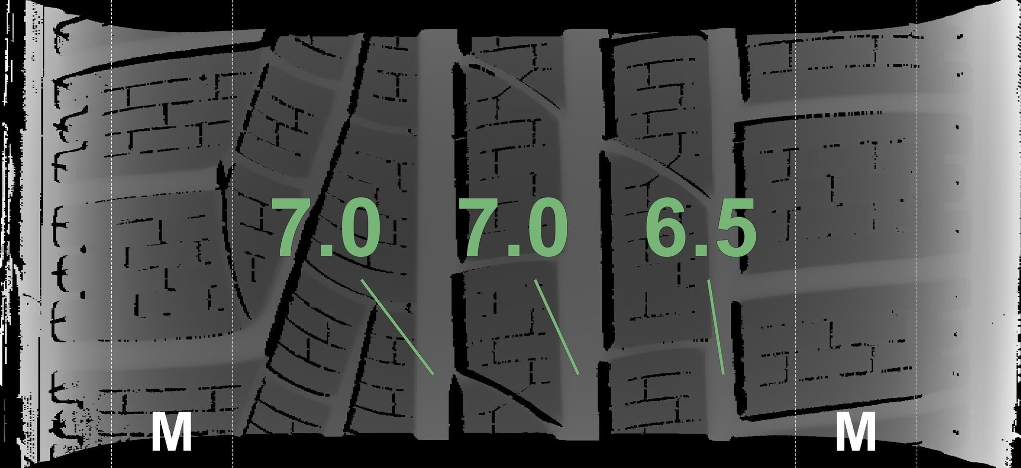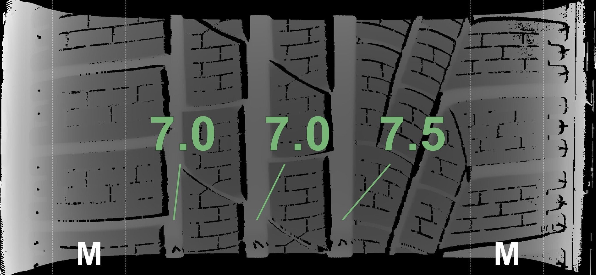 Zustand | Profiltiefe | DOT | Hinterachse Rechts | Neu | 7,0 mm | 0521 |