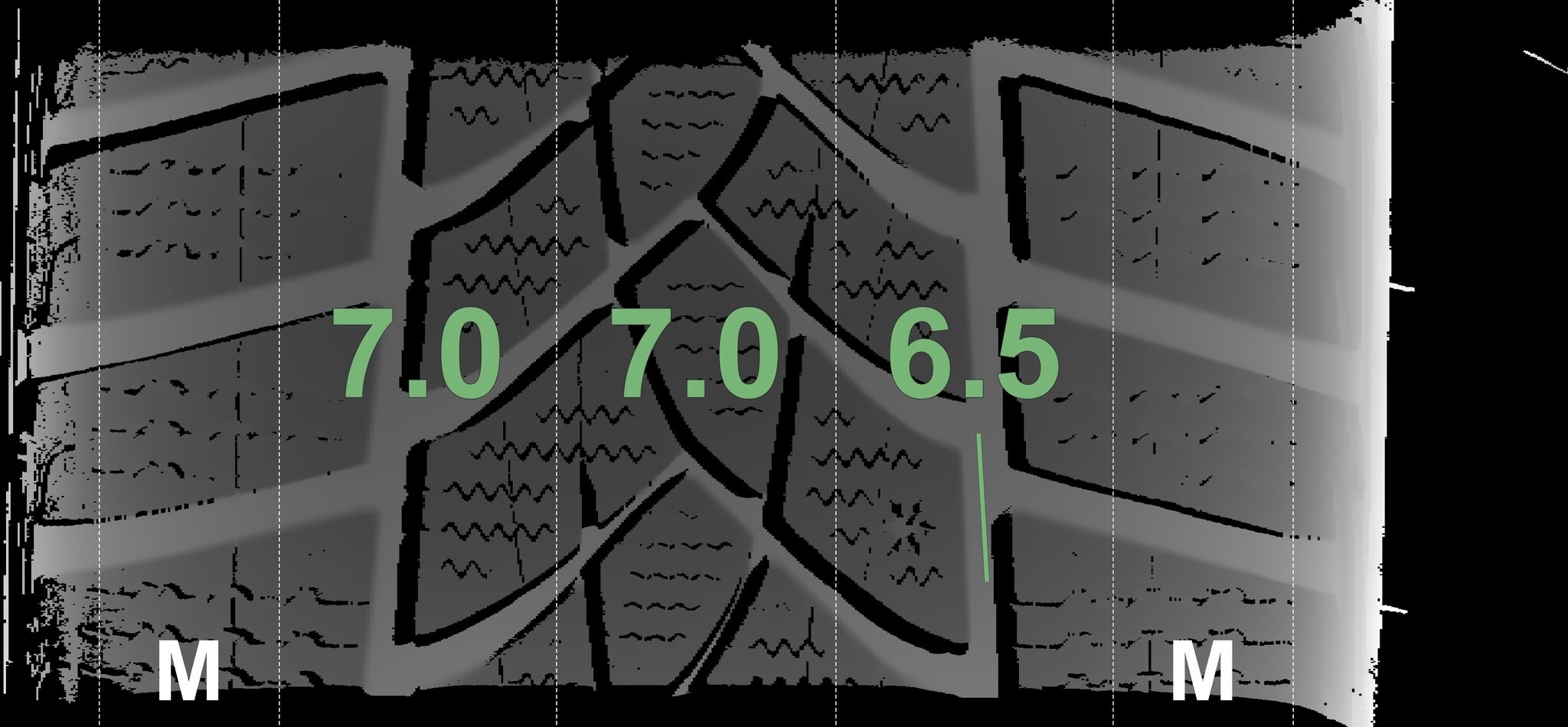 | Zustand | Profiltiefe | DOT | Vorderachse Links | Gebraucht | 8.0 mm | 1922 |
