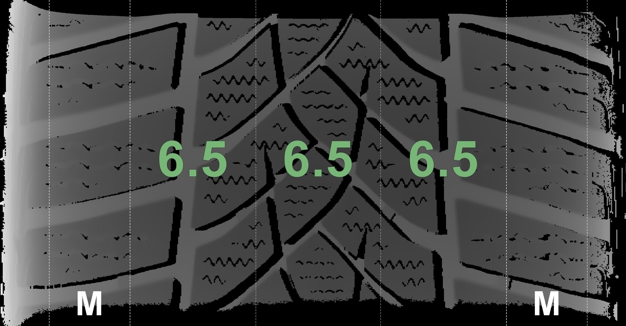 Die gemessenen Profiltiefen und die Details der Felgen sind oben dargestellt.