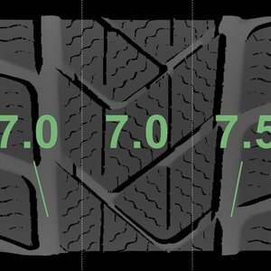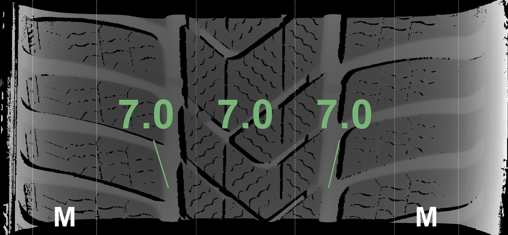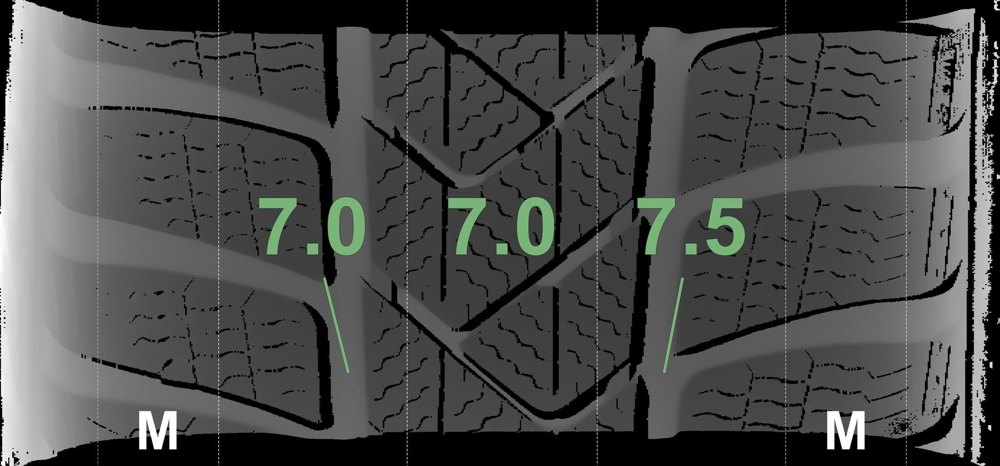 Die gemessenen Profiltiefen und Details der Felgen sind oben abgebildet.