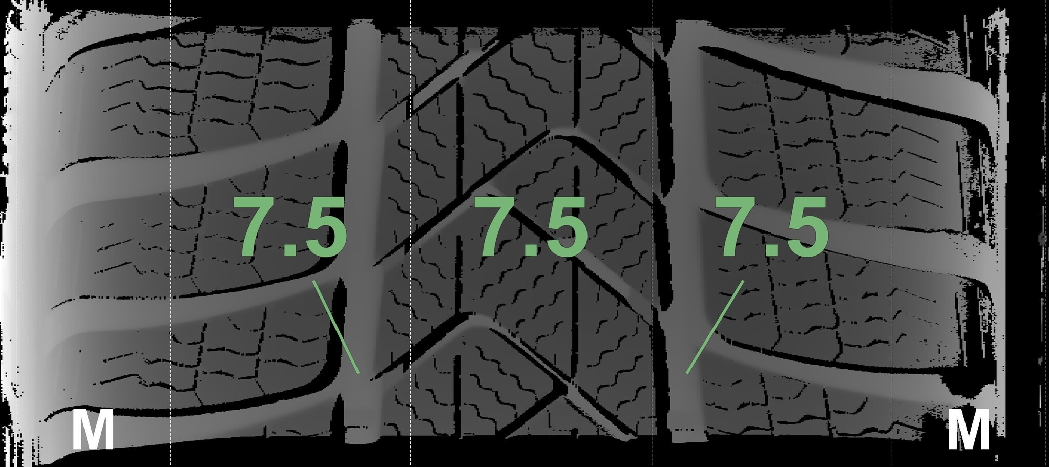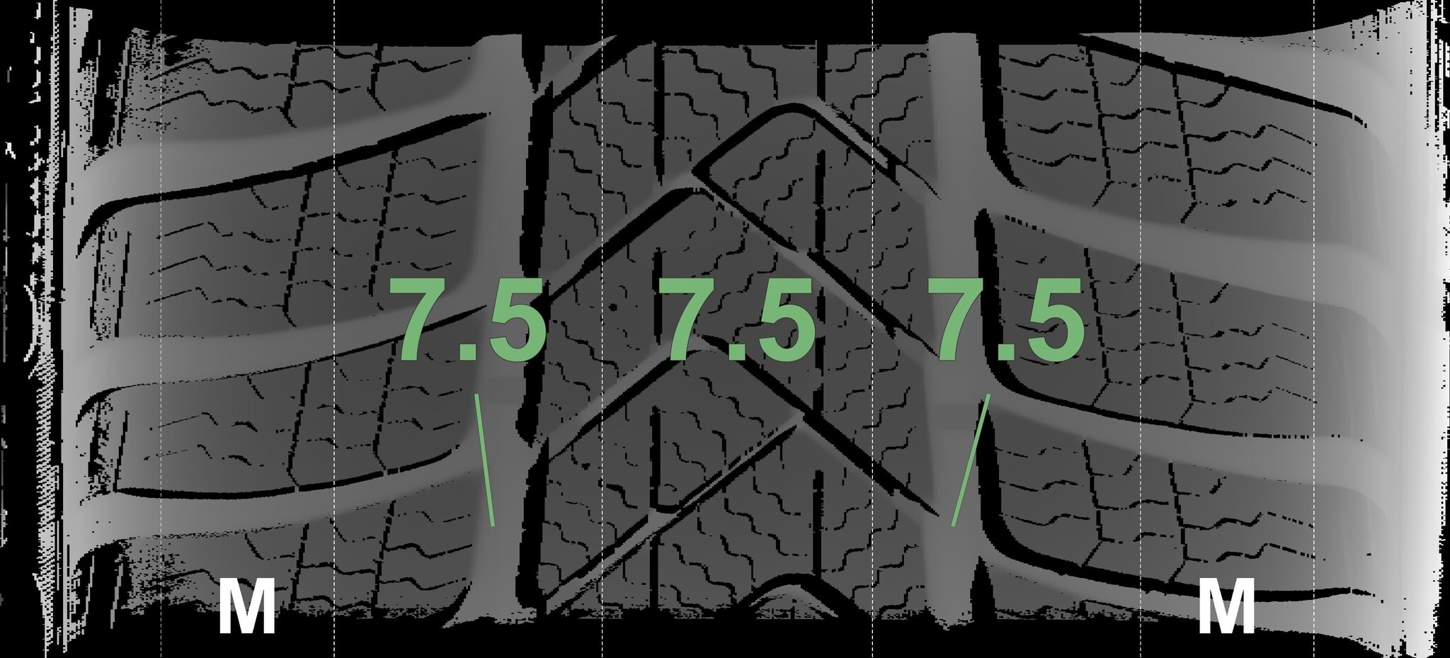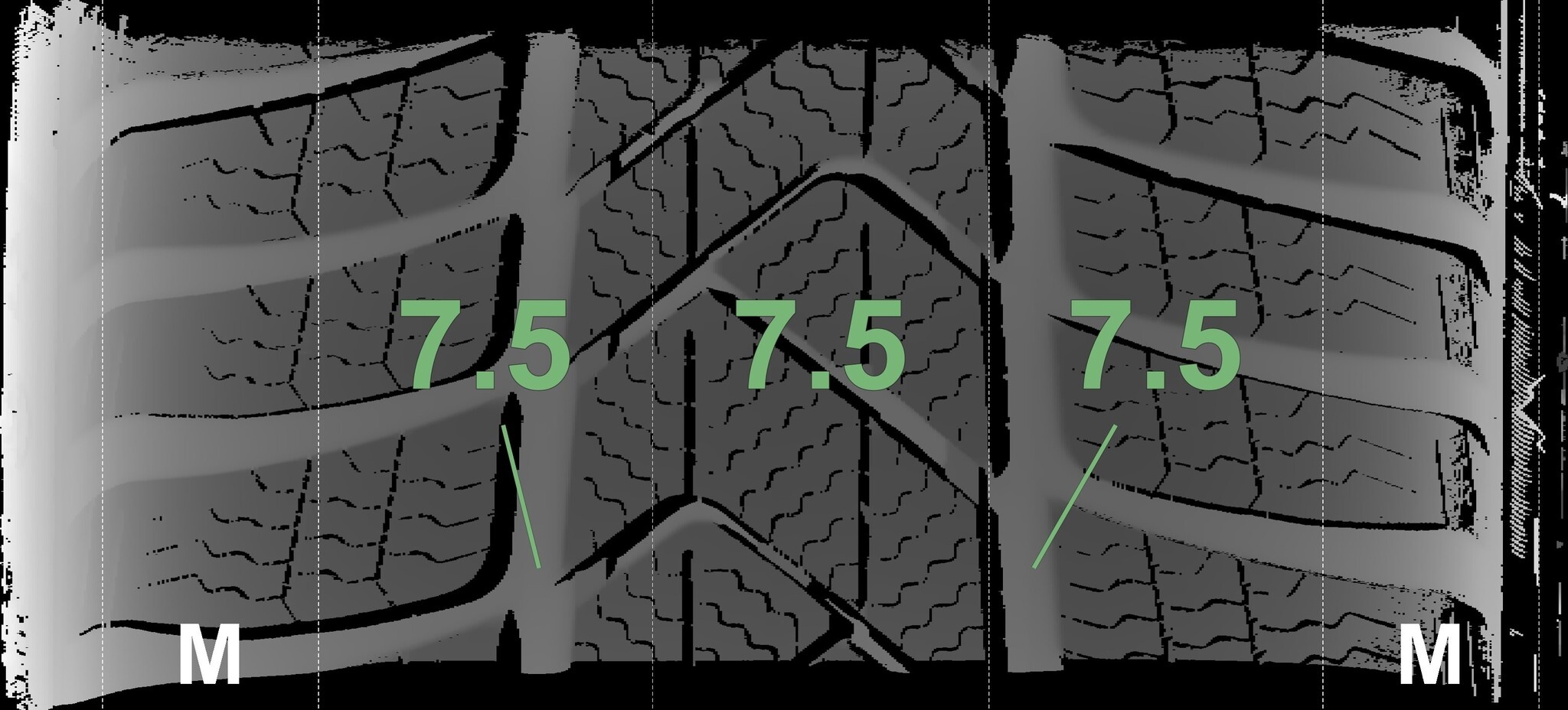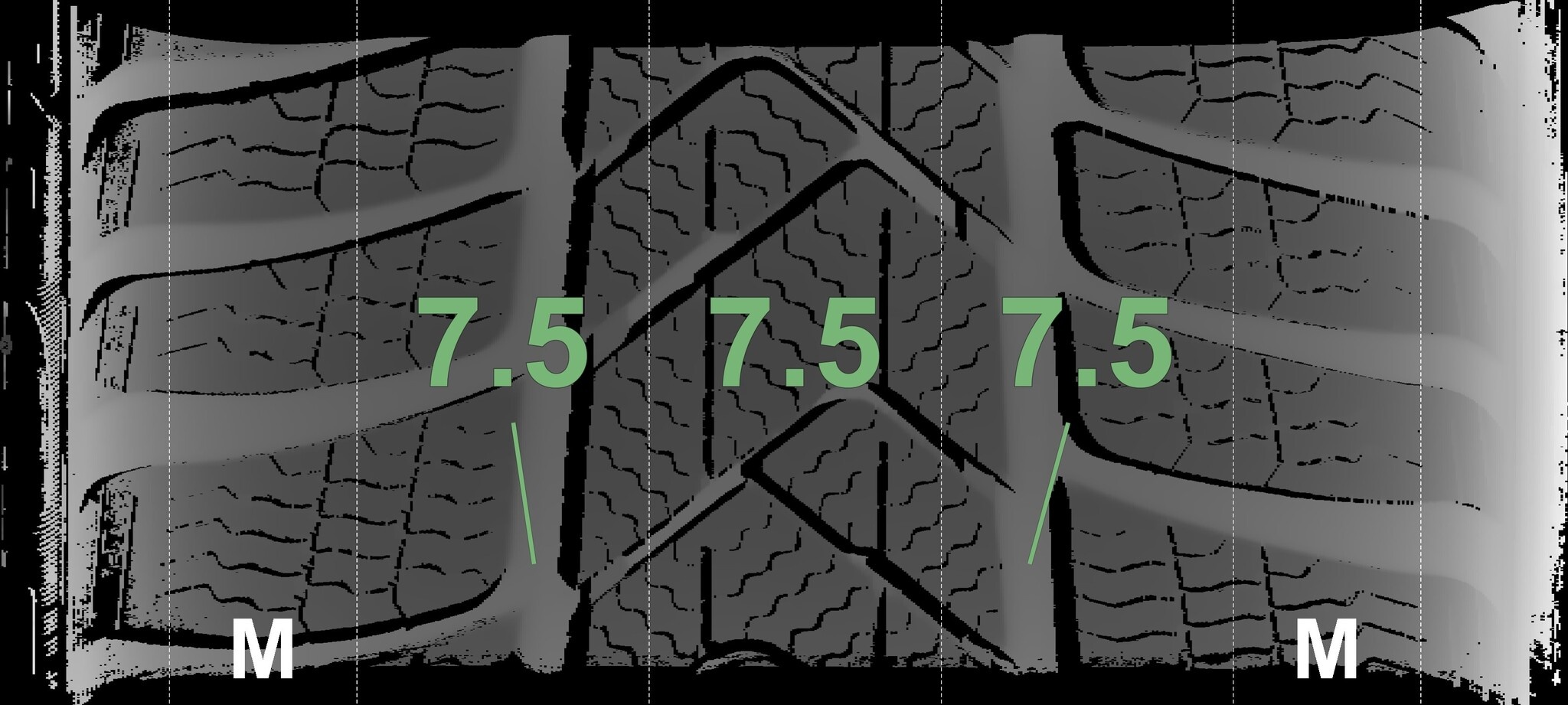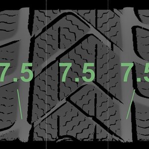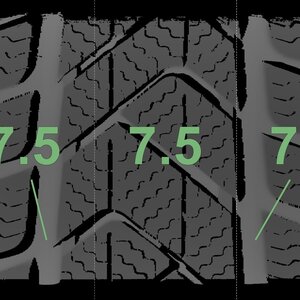 | Zustand | Profiltiefe | DOT | Vorderachse Rechts | Demo-Noppen noch sichtbar | 7,5 mm | 2222 |