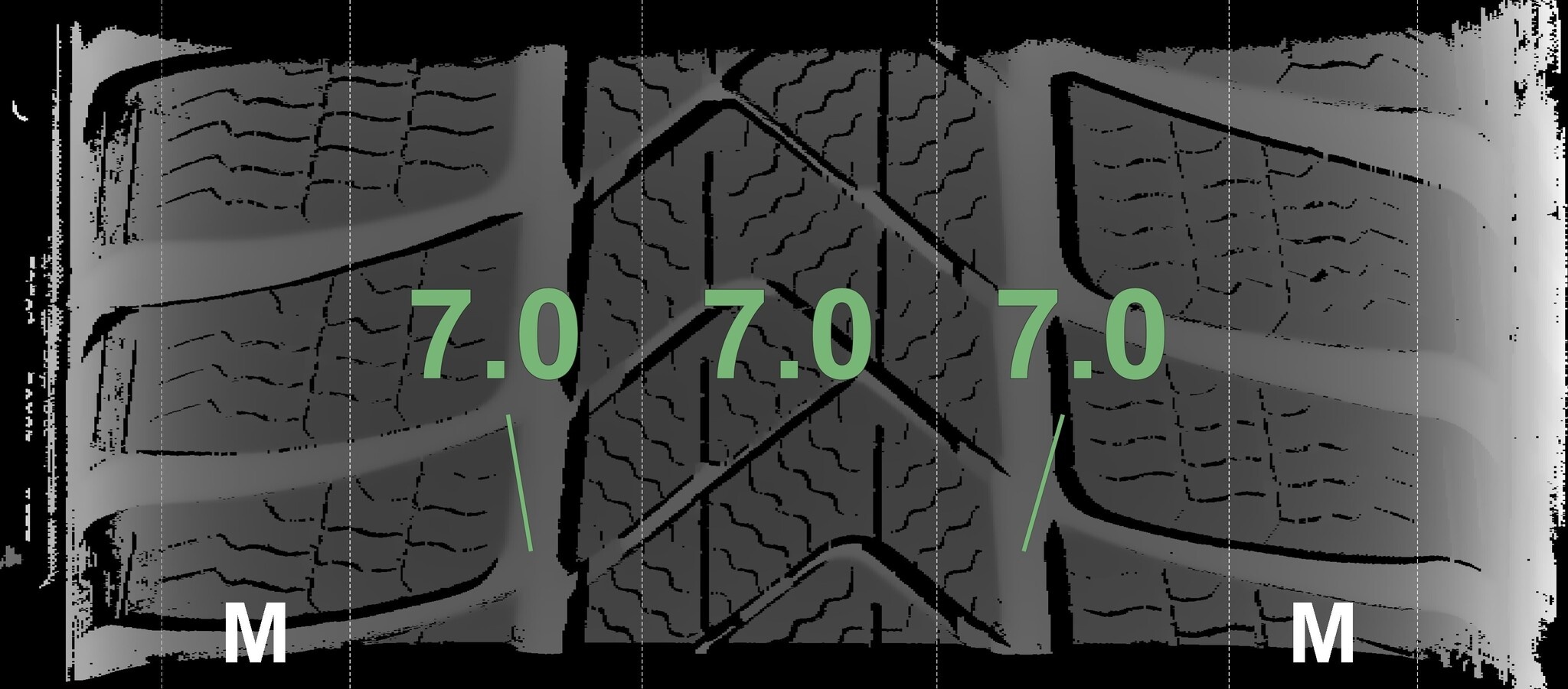 Zustand | Profiltiefe | DOT | Vorderachse Rechts | Gebraucht | 7,0 mm | 2122 |