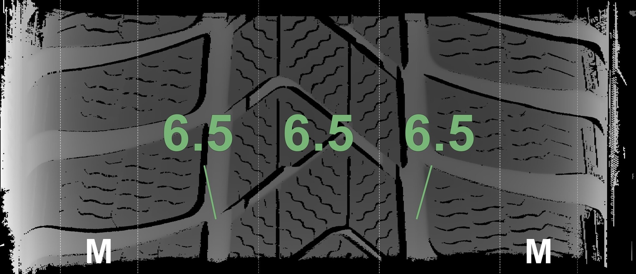 Die gemessenen Profiltiefen und Details der Felgen sind oben abgebildet.