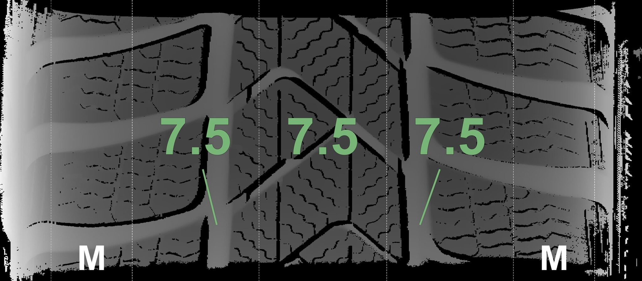 Zustand | Profiltiefe | DOT | Vorderachse Links | Gebraucht | 7,5 mm | 2122 |