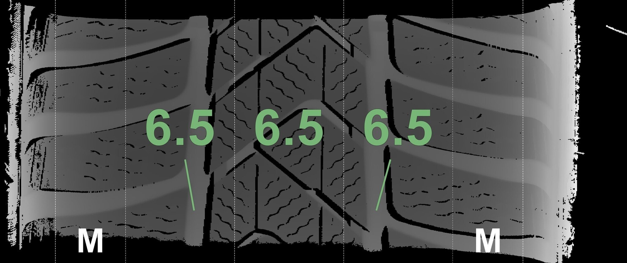 Die gemessenen Profiltiefen und Details der Felgen sind oben abgebildet.