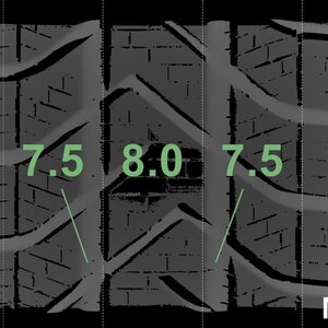 Die gemessenen Profiltiefen und Details zu den Felgen sind oben abgebildet.