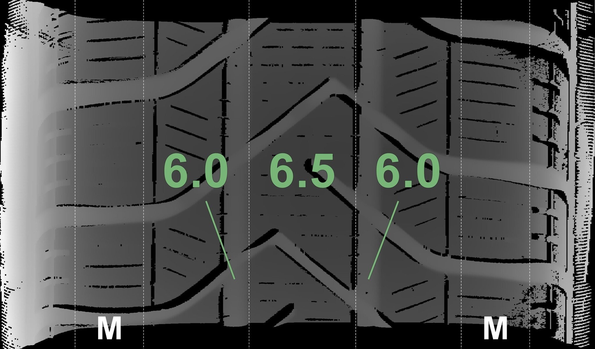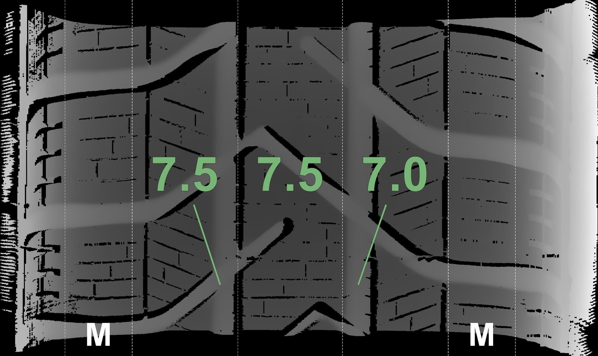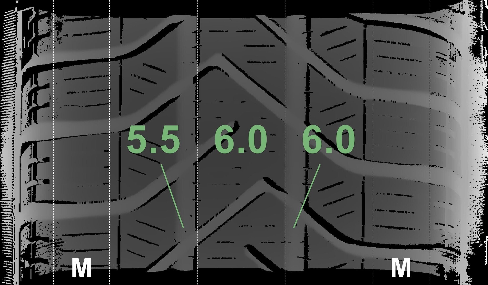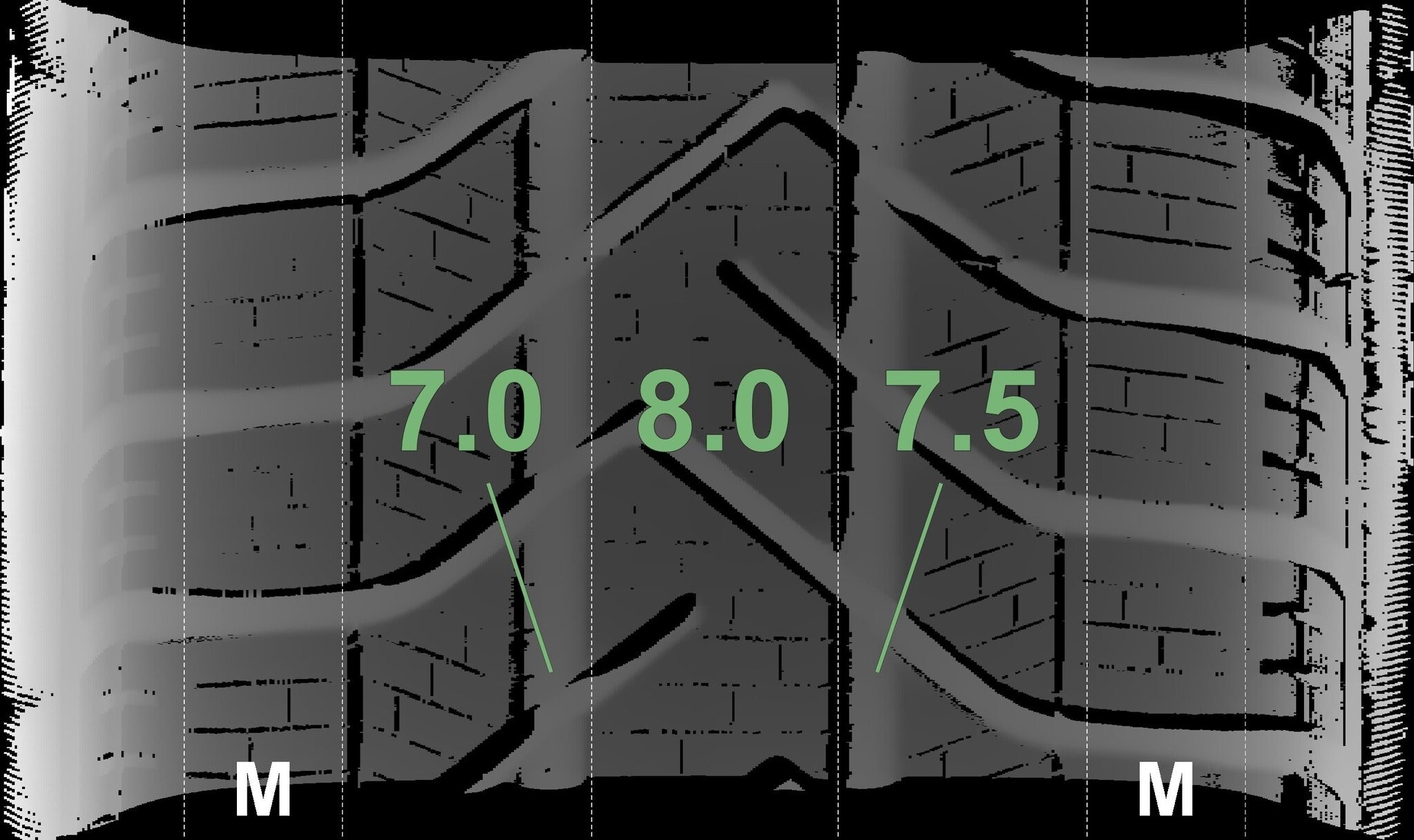 Die gemessenen Profiltiefen und Details zu den Felgen sind oben abgebildet.
