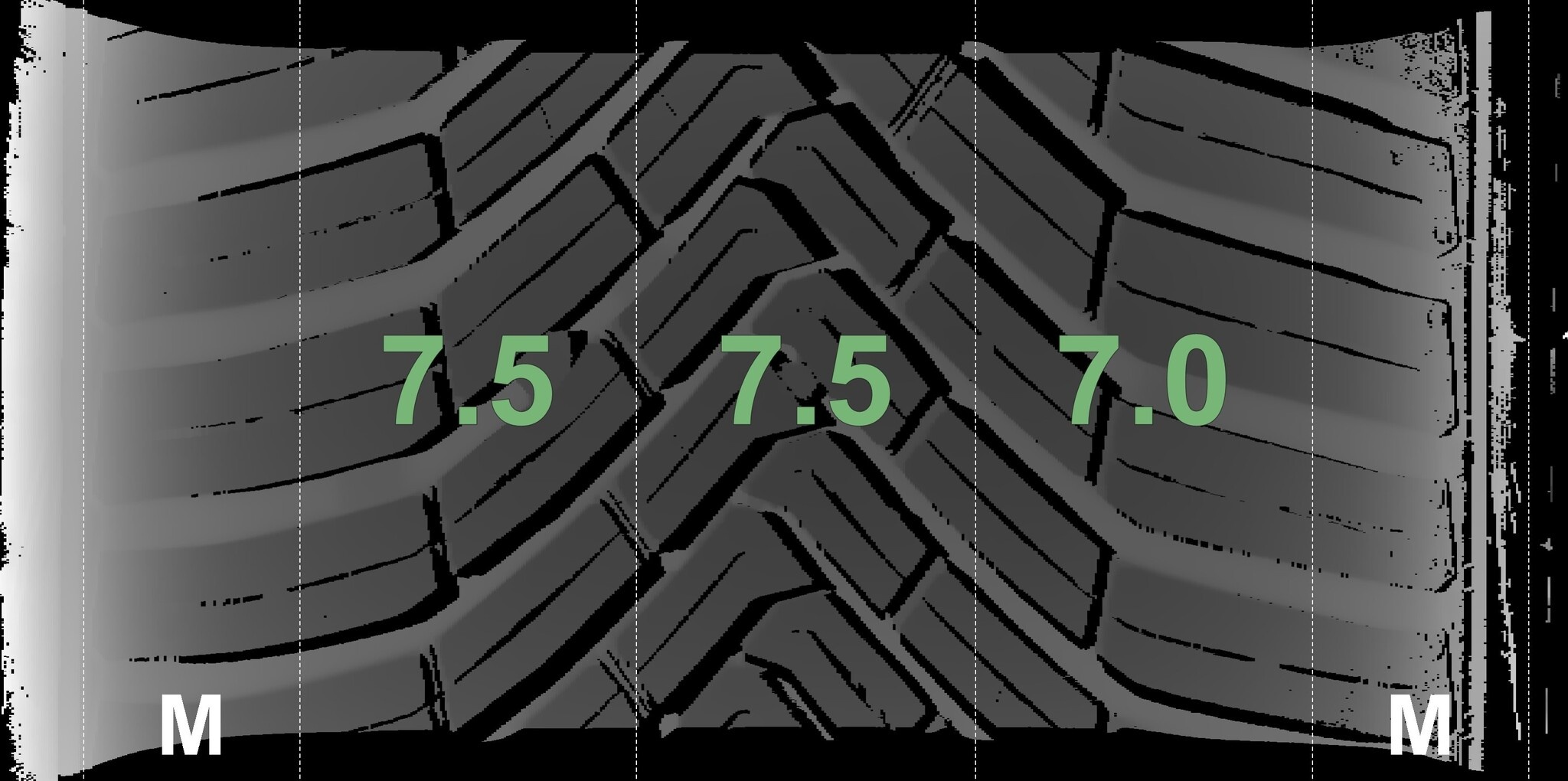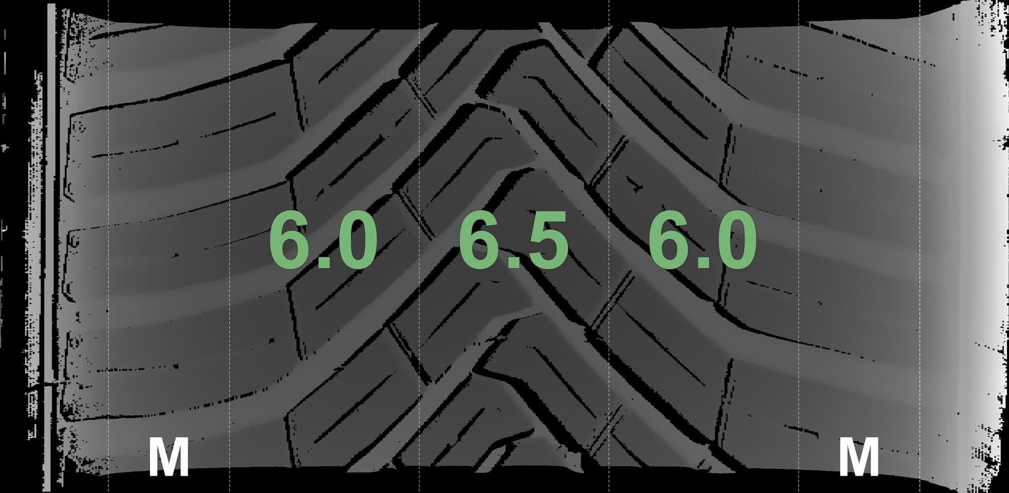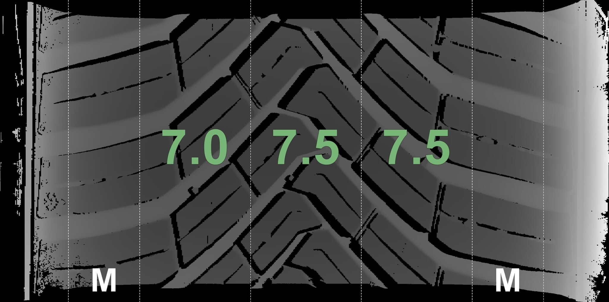 Die gemessenen Profiltiefen und Details zu den Felgen sind oben abgebildet.