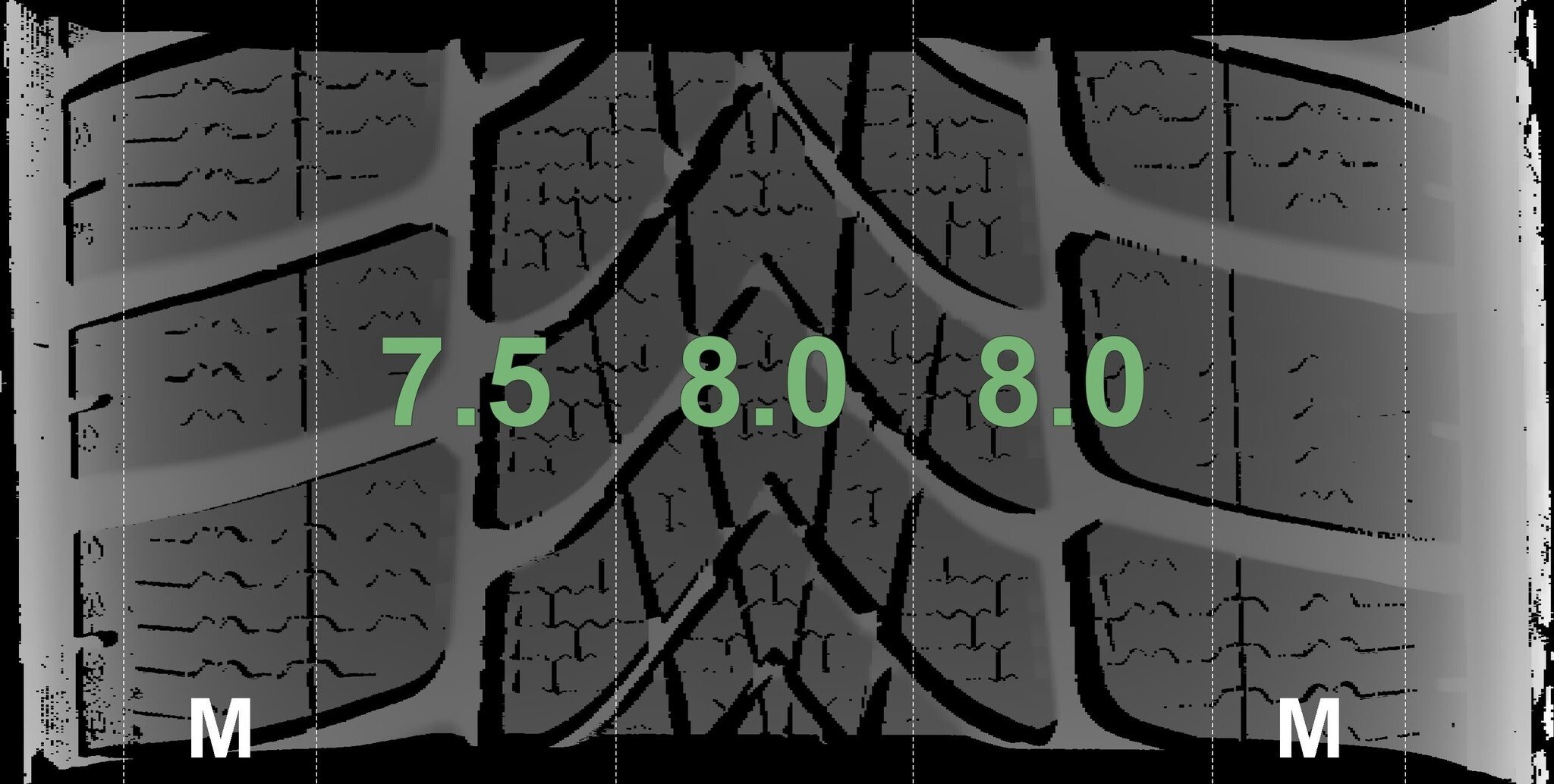 Die gemessenen Profiltiefen und Details zu den Felgen sind oben abgebildet.