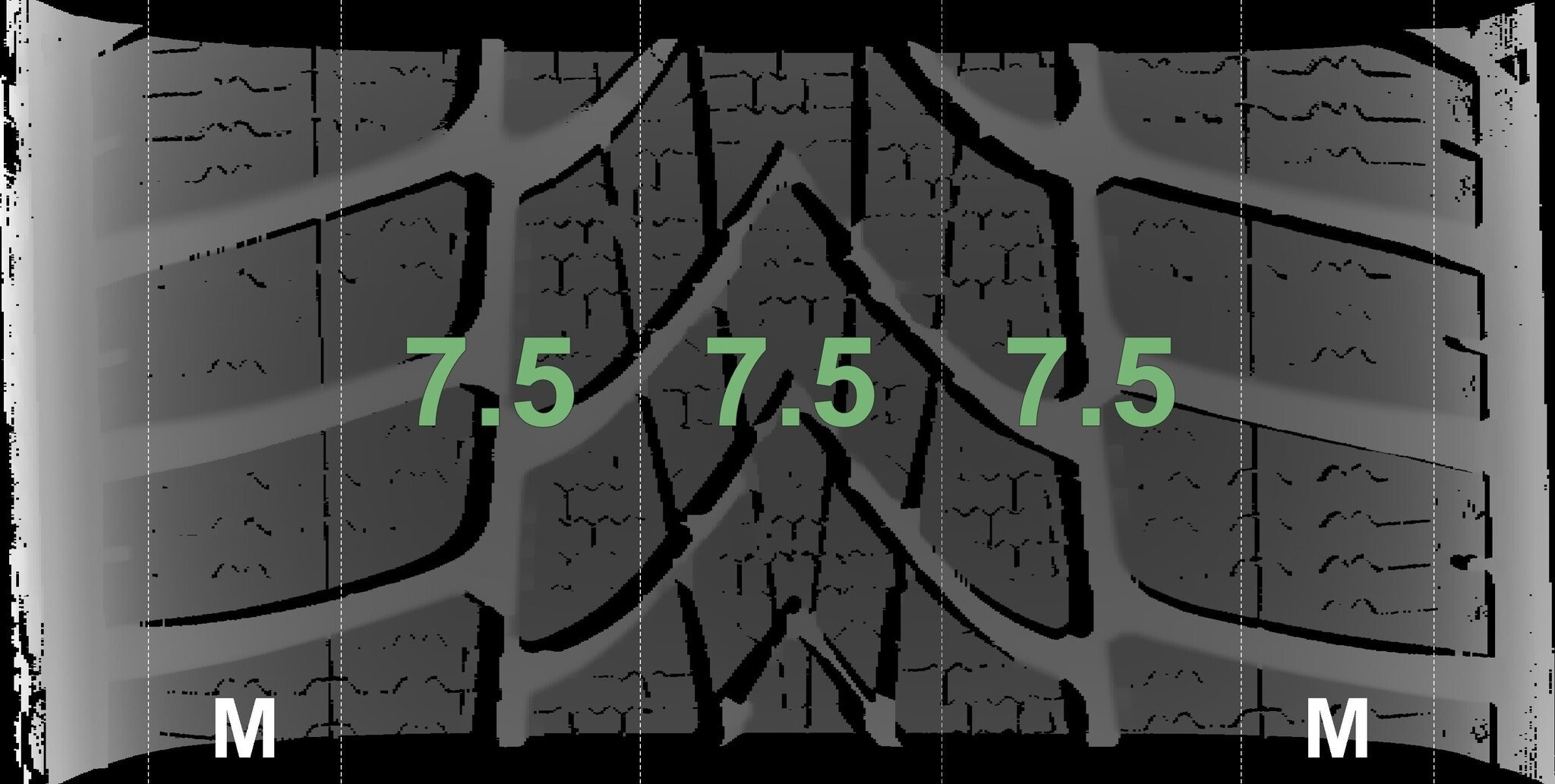 Zustand | Profiltiefe | DOT | Hinterachse Rechts | Demo-Noppen noch sichtbar | 7,5 mm | 3223 |