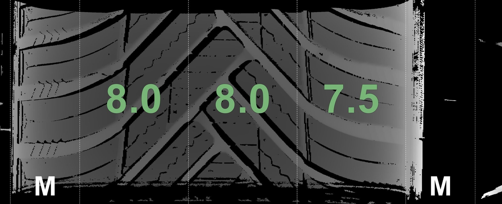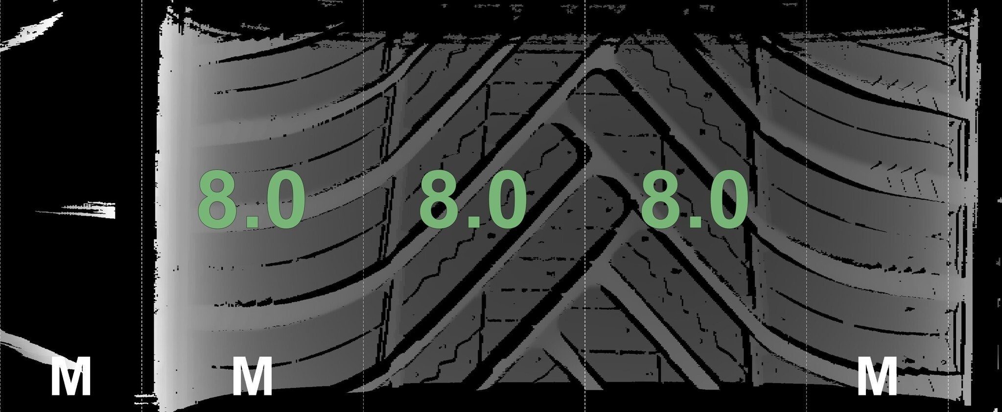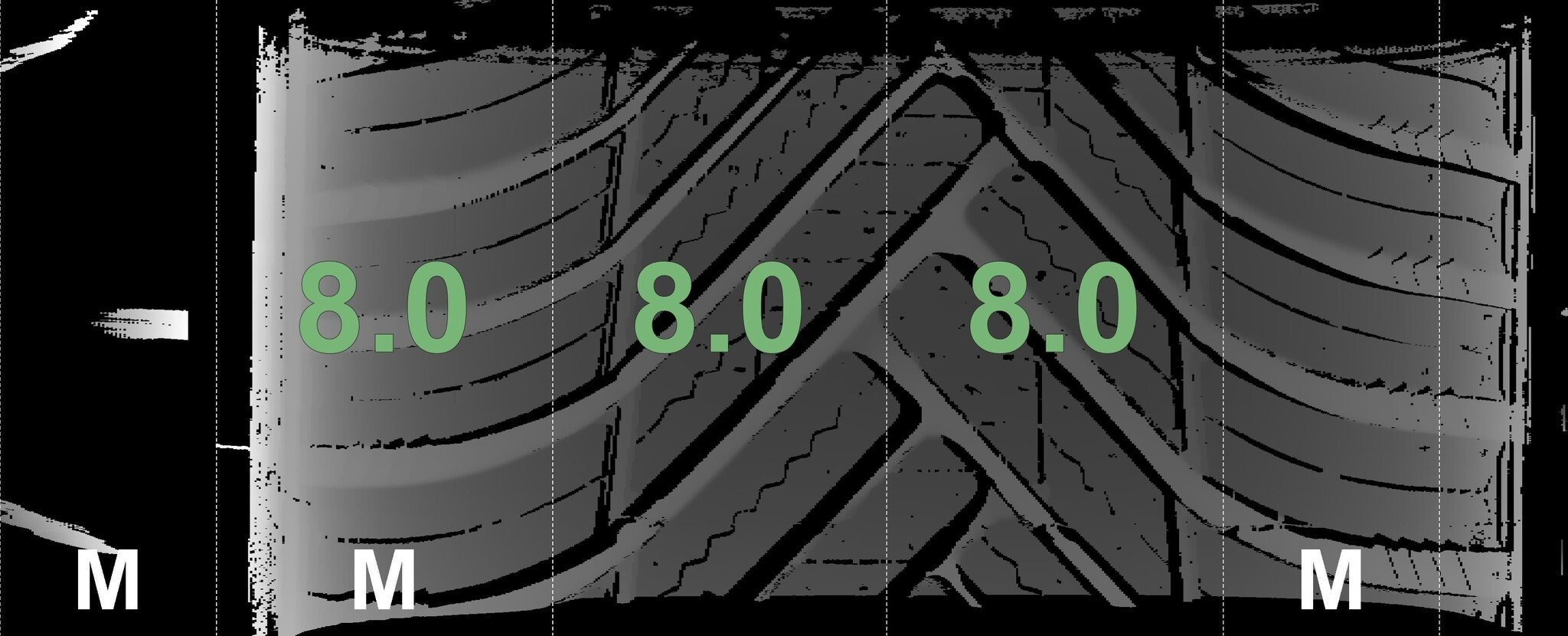 | Zustand | Profiltiefe | DOT | Vorderachse Links | Neu | 8,0 mm | 3225 |