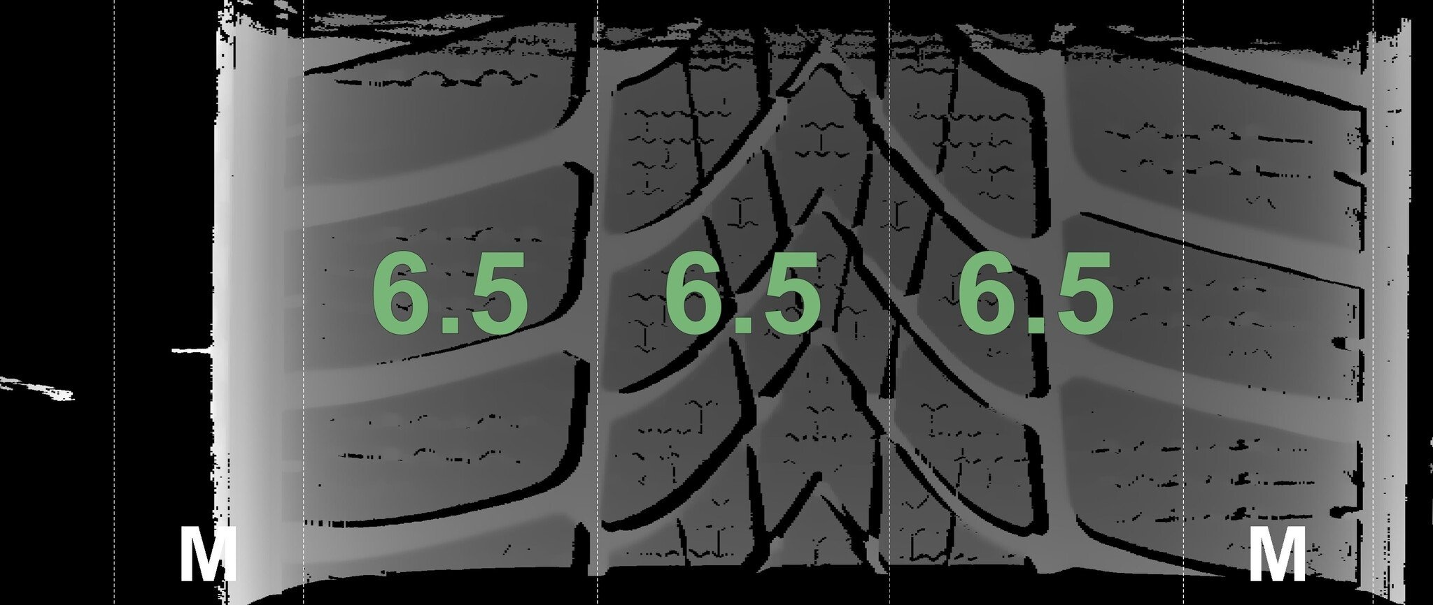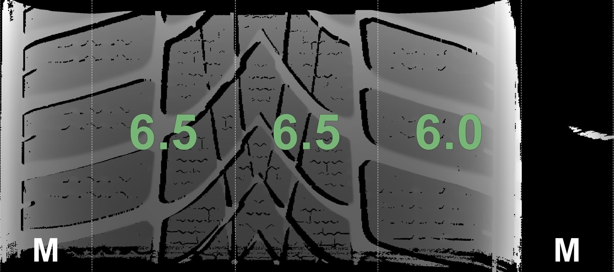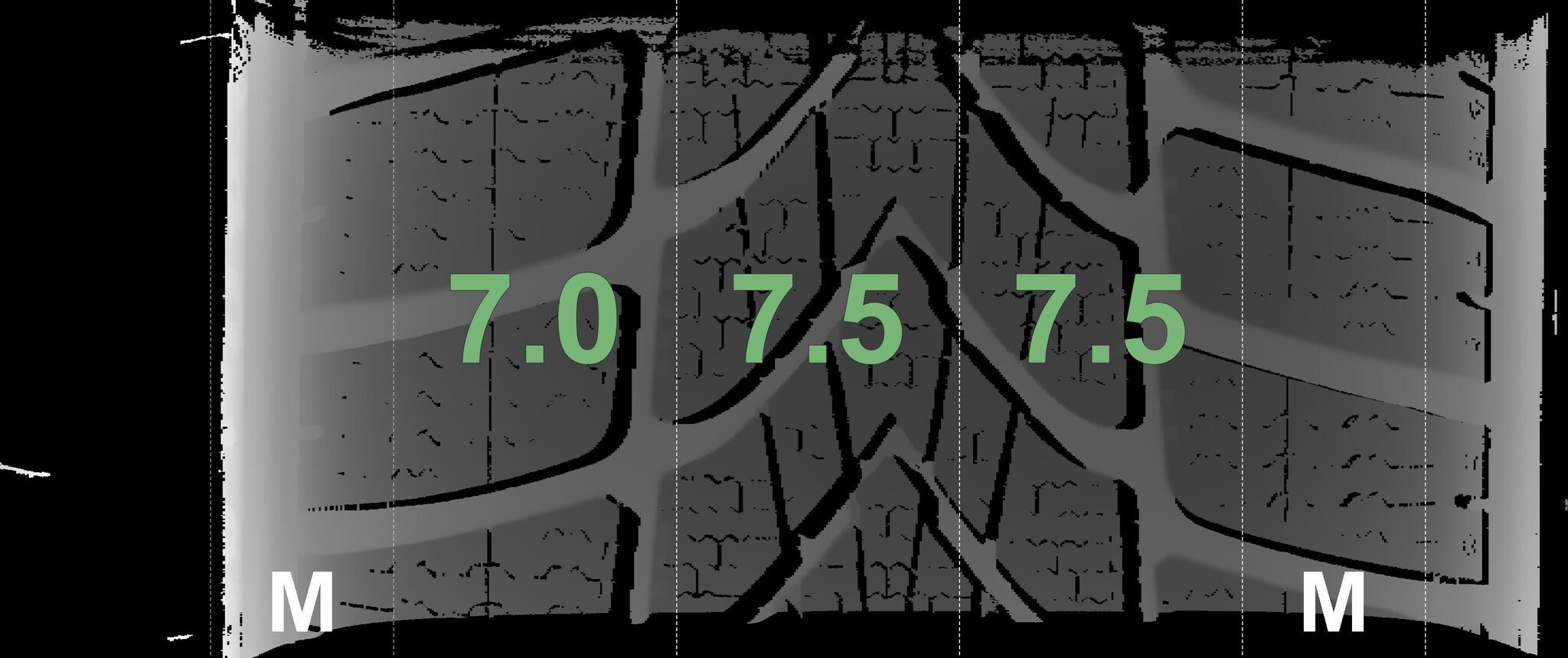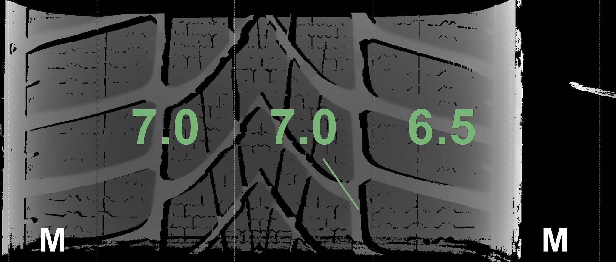 Die gemessenen Profiltiefen und die Details der Felgen sind oben angegeben.