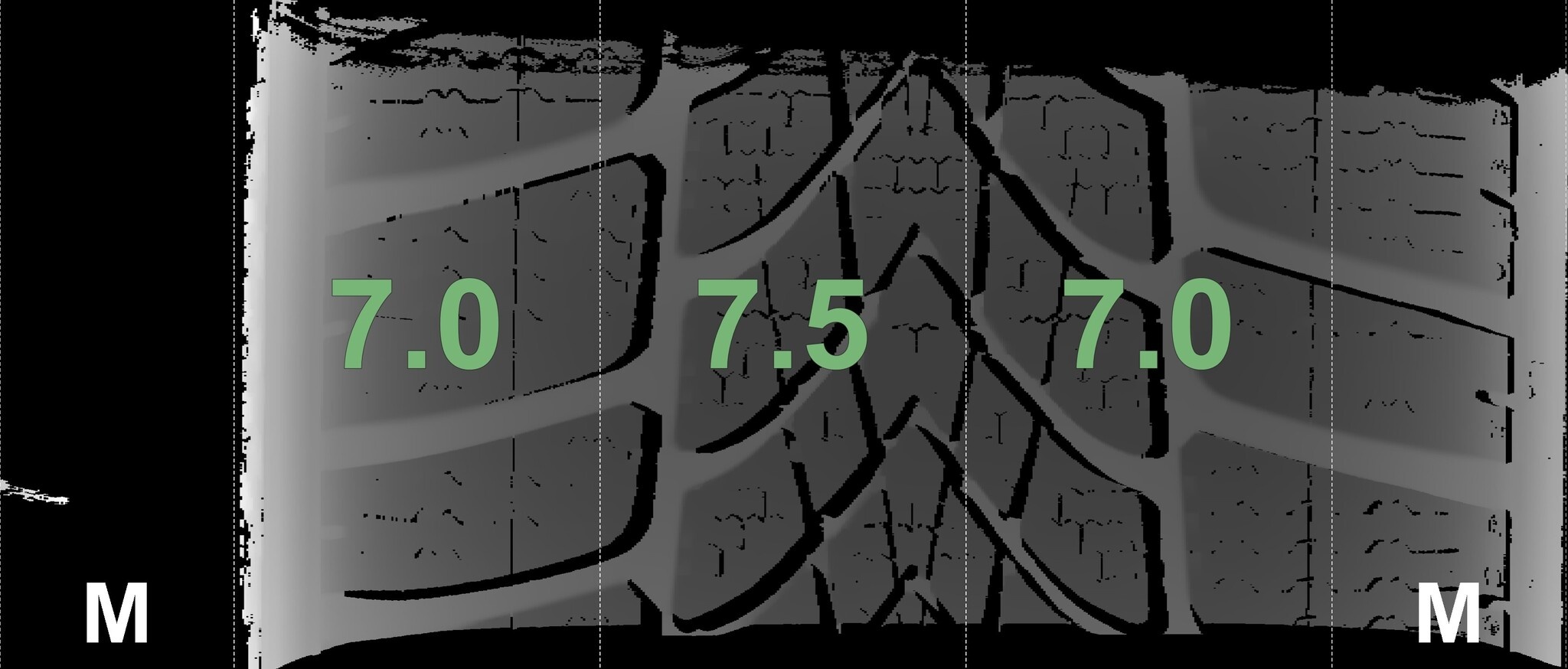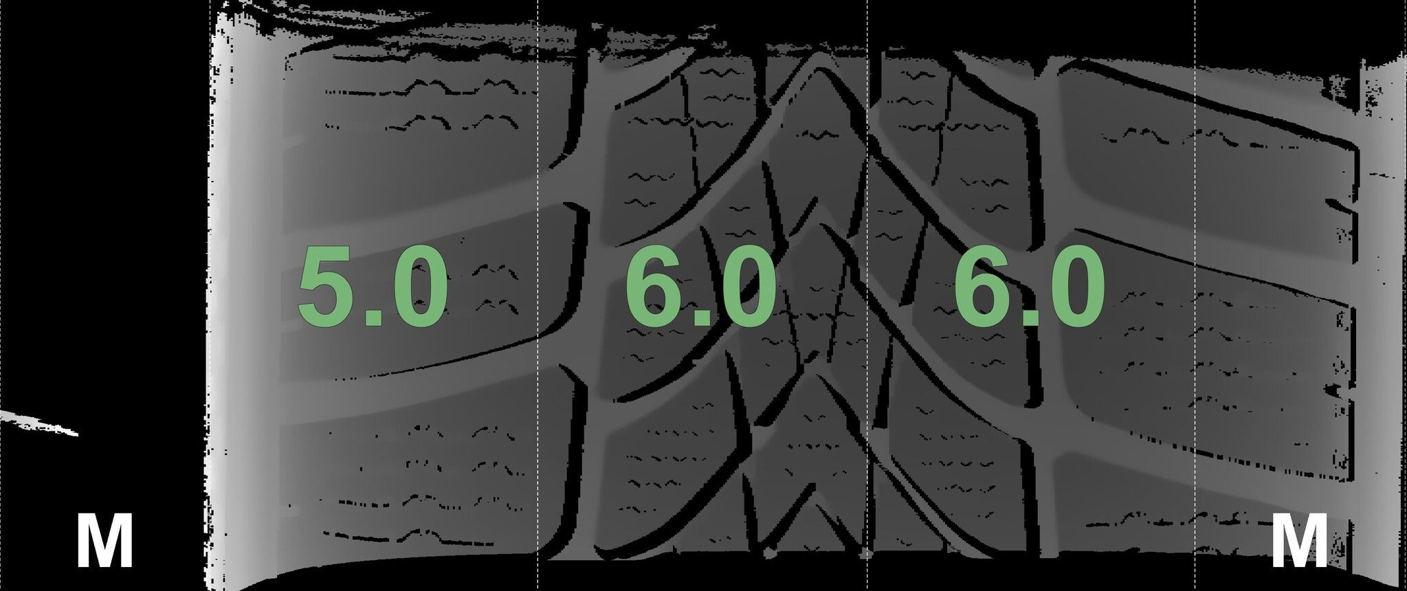 Die gemessenen Profiltiefen und die Details der Felgen sind oben angegeben.