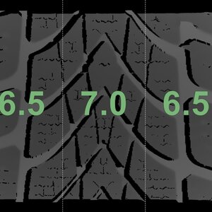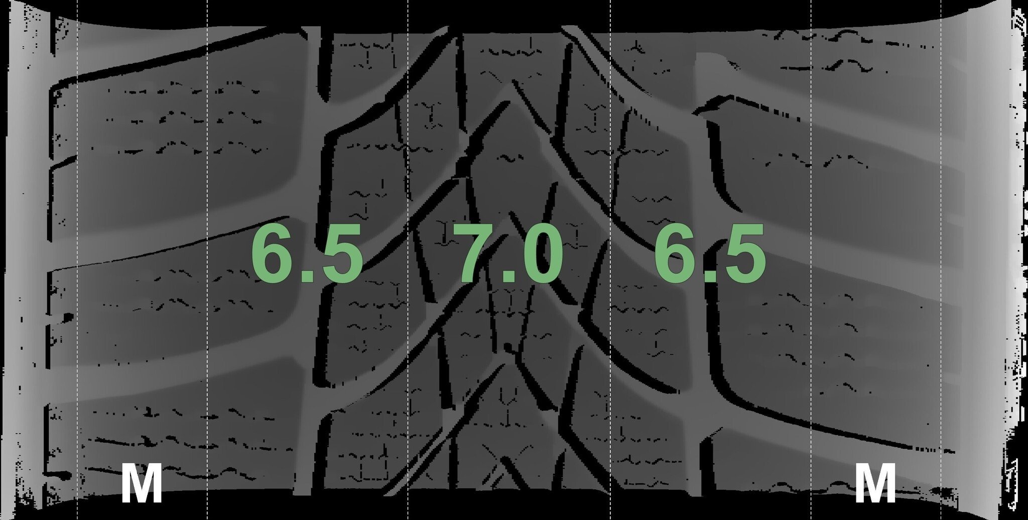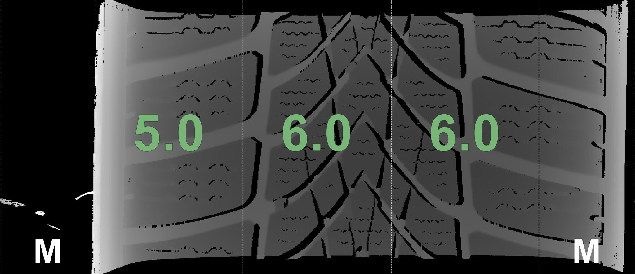 Die gemessenen Profiltiefen und die Details der Felgen sind oben dargestellt.