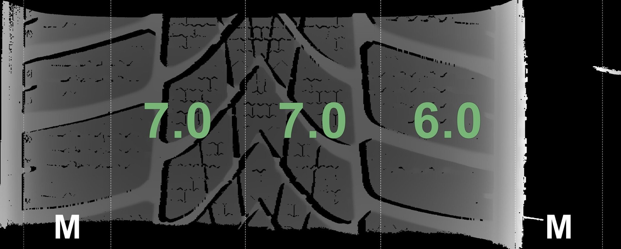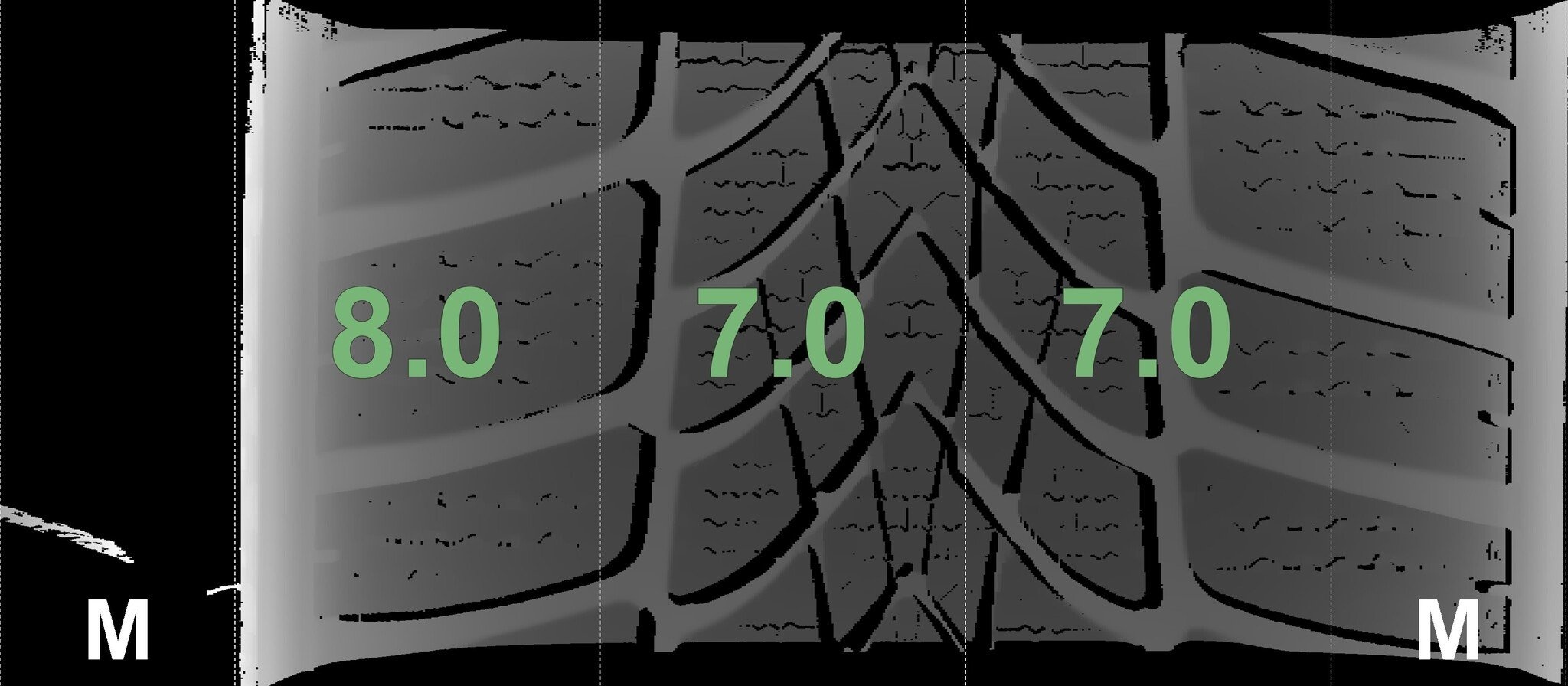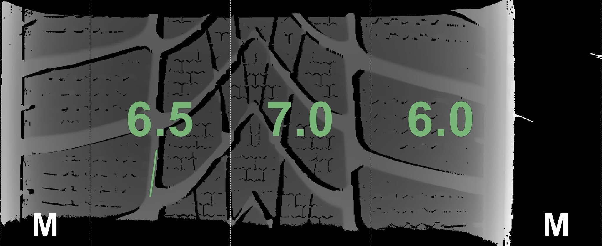 Die gemessenen Profiltiefen und die Details der Felgen sind oben aufgeführt.