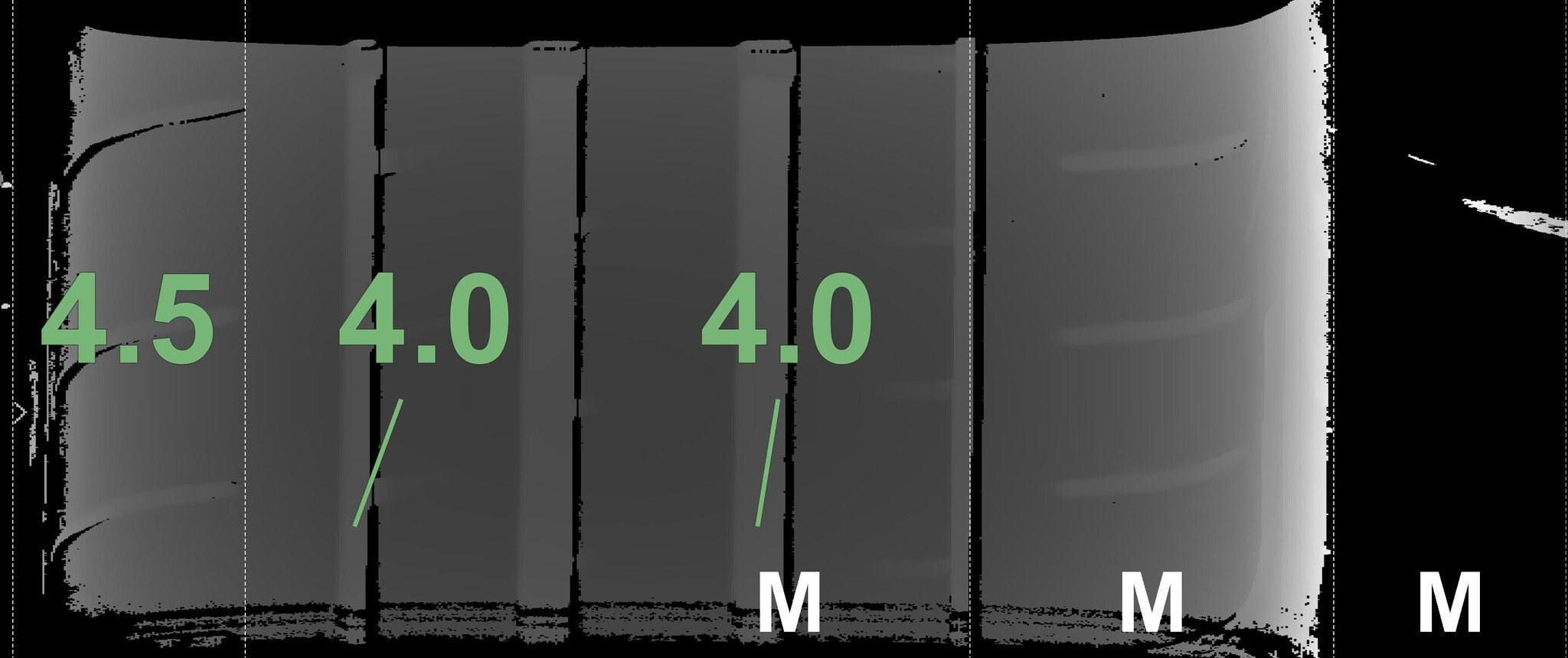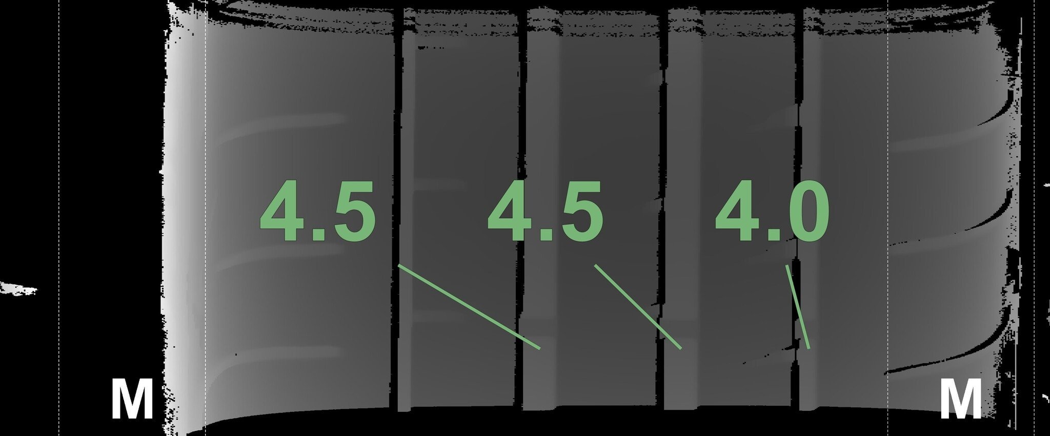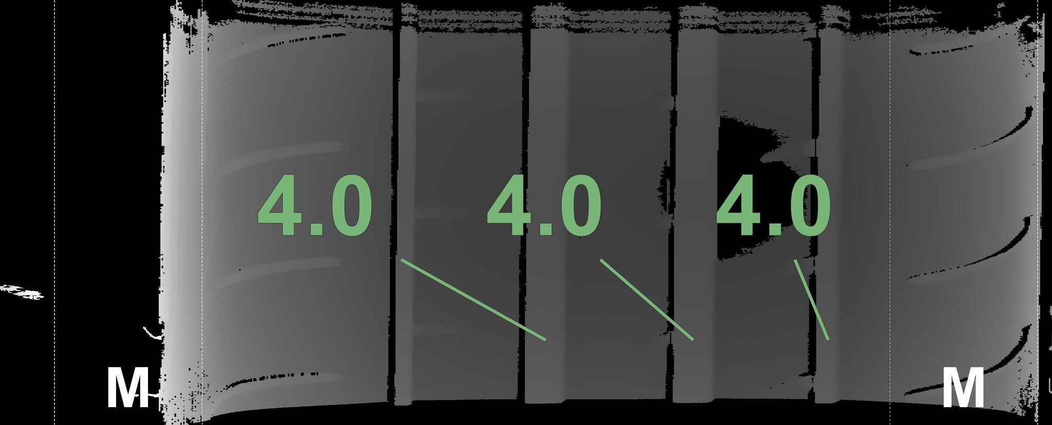 Die gemessenen Profiltiefen und die Details der Felgen sind oben dargestellt.