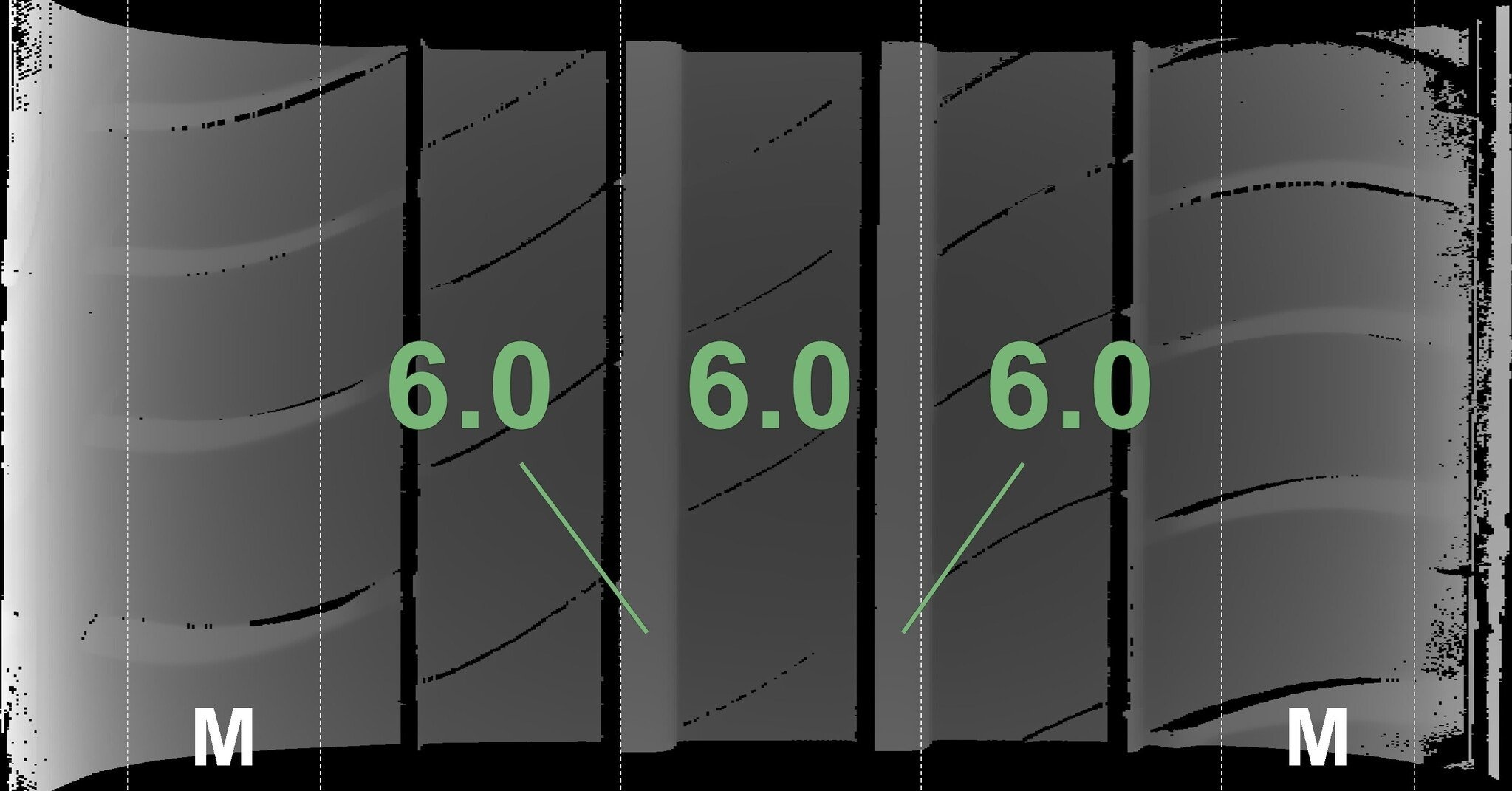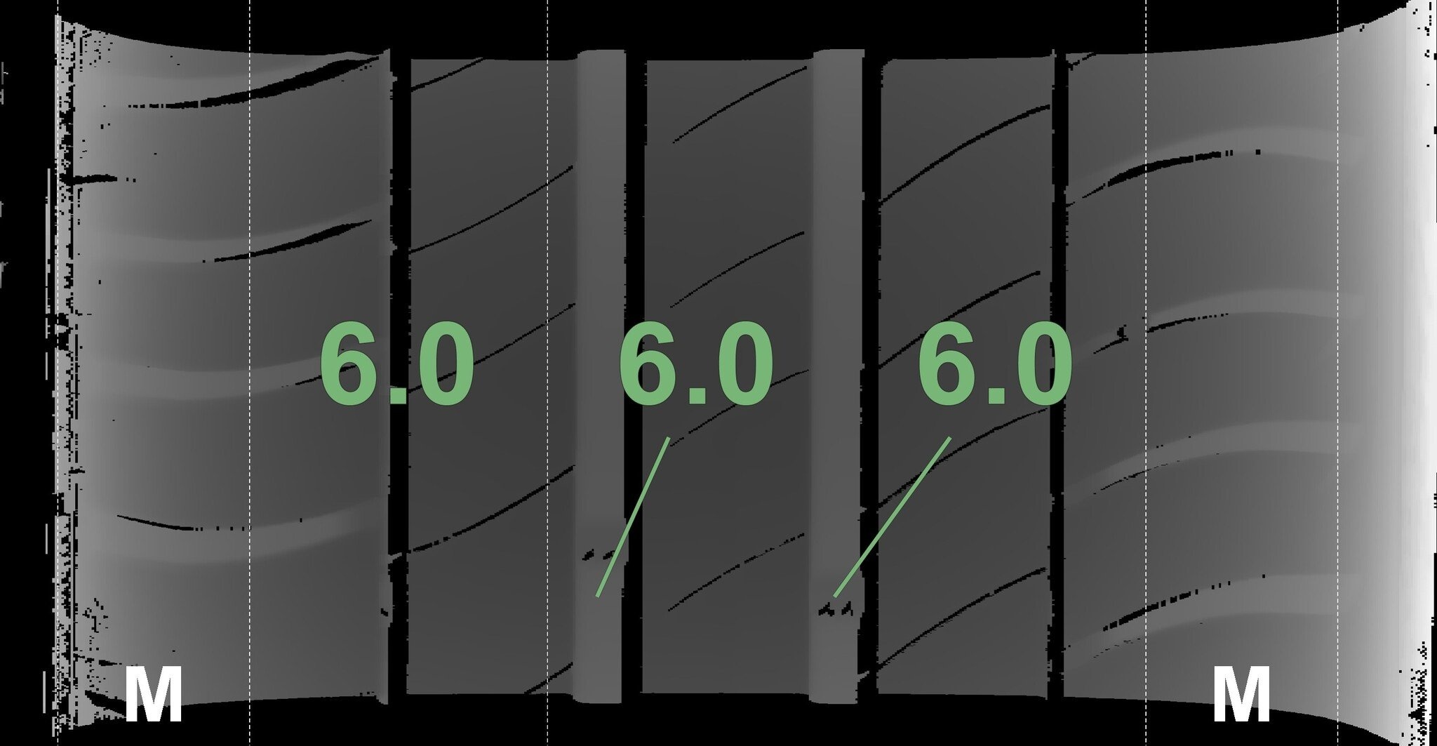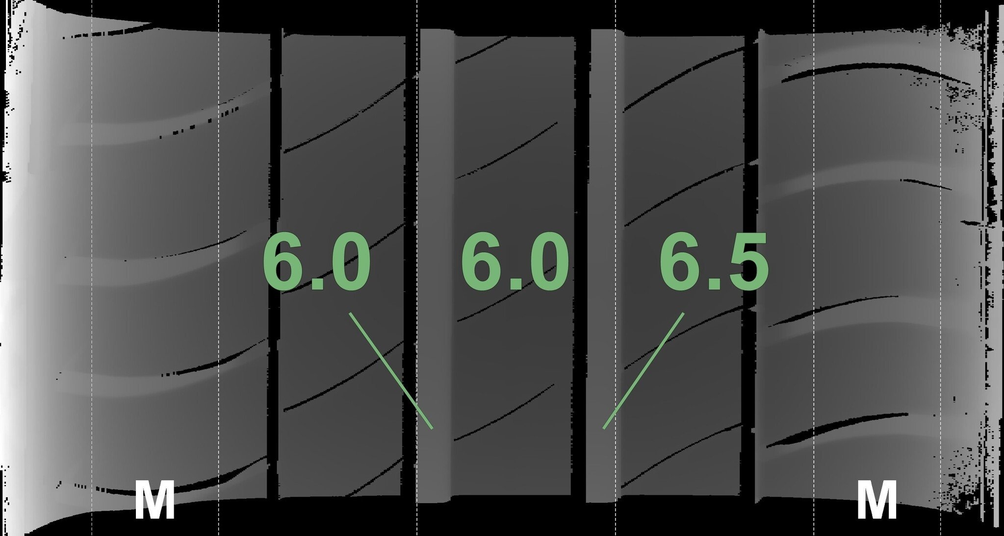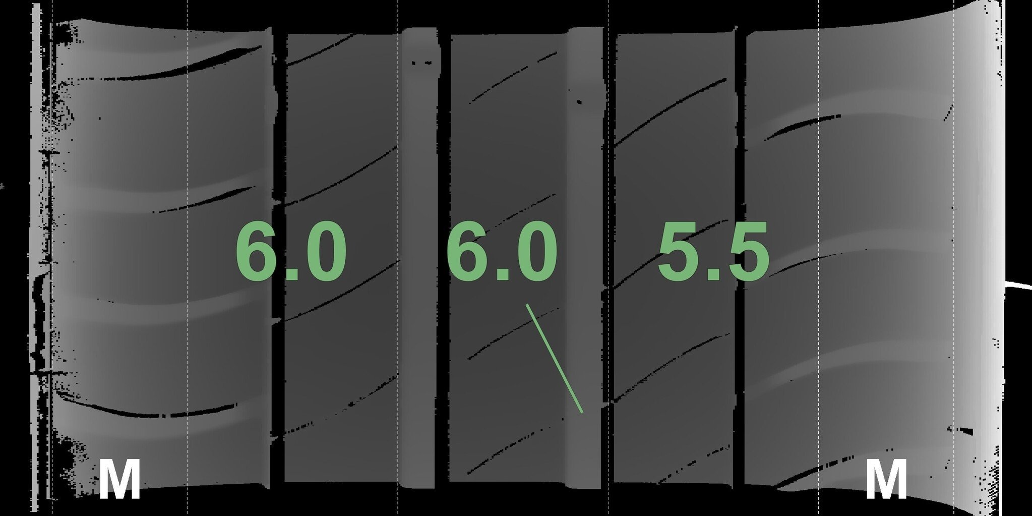 Die gemessenen Profiltiefen und Details zu den Felgen sind oben dargestellt.