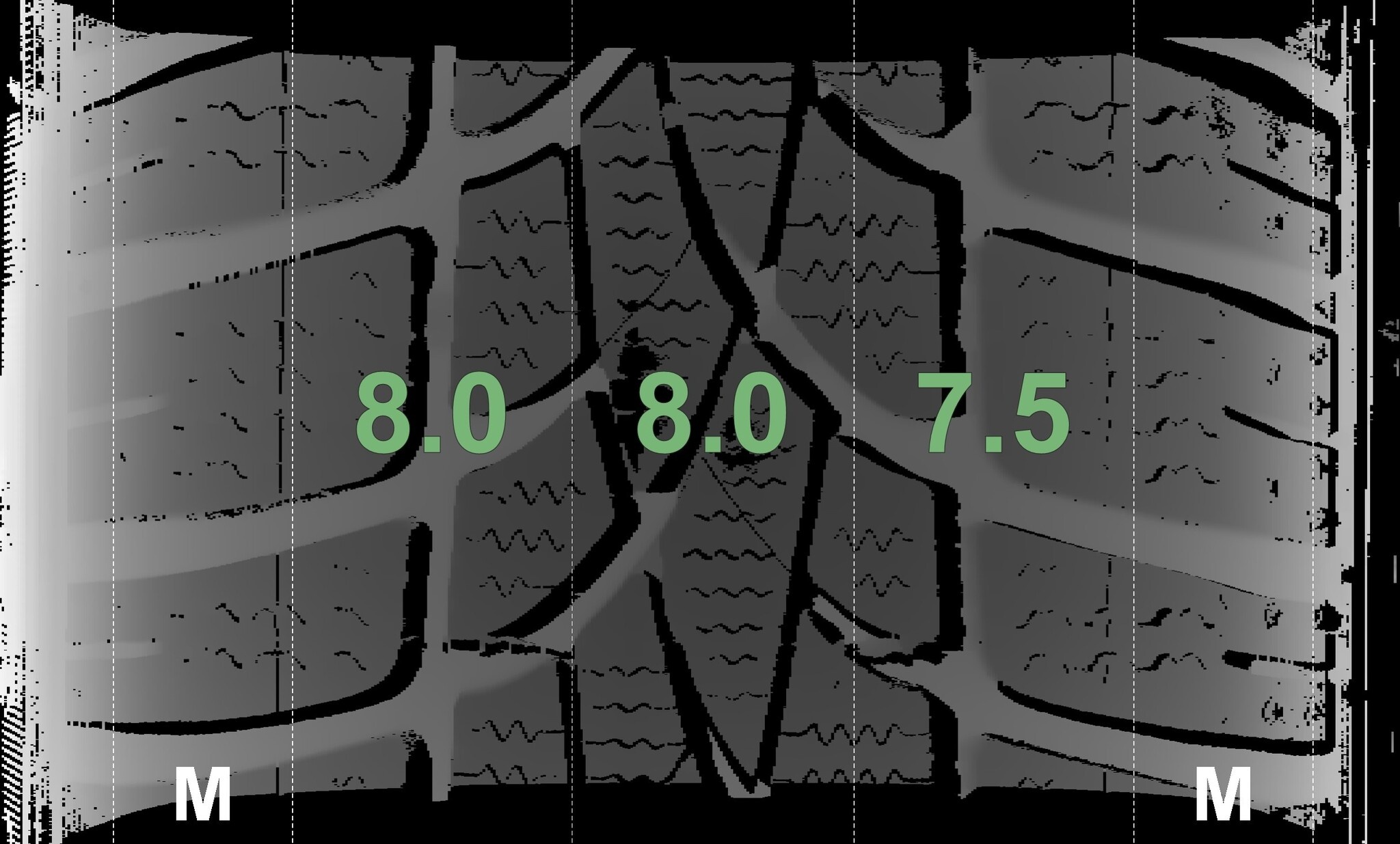 Die gemessenen Profiltiefen und Details zu den Felgen sind oben abgebildet.