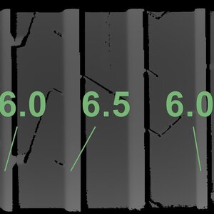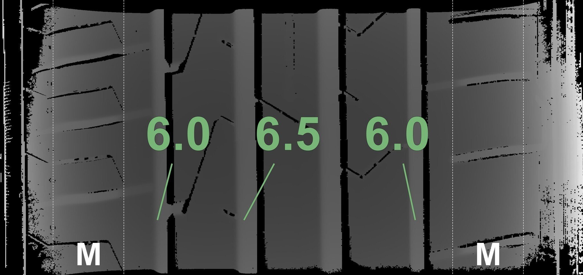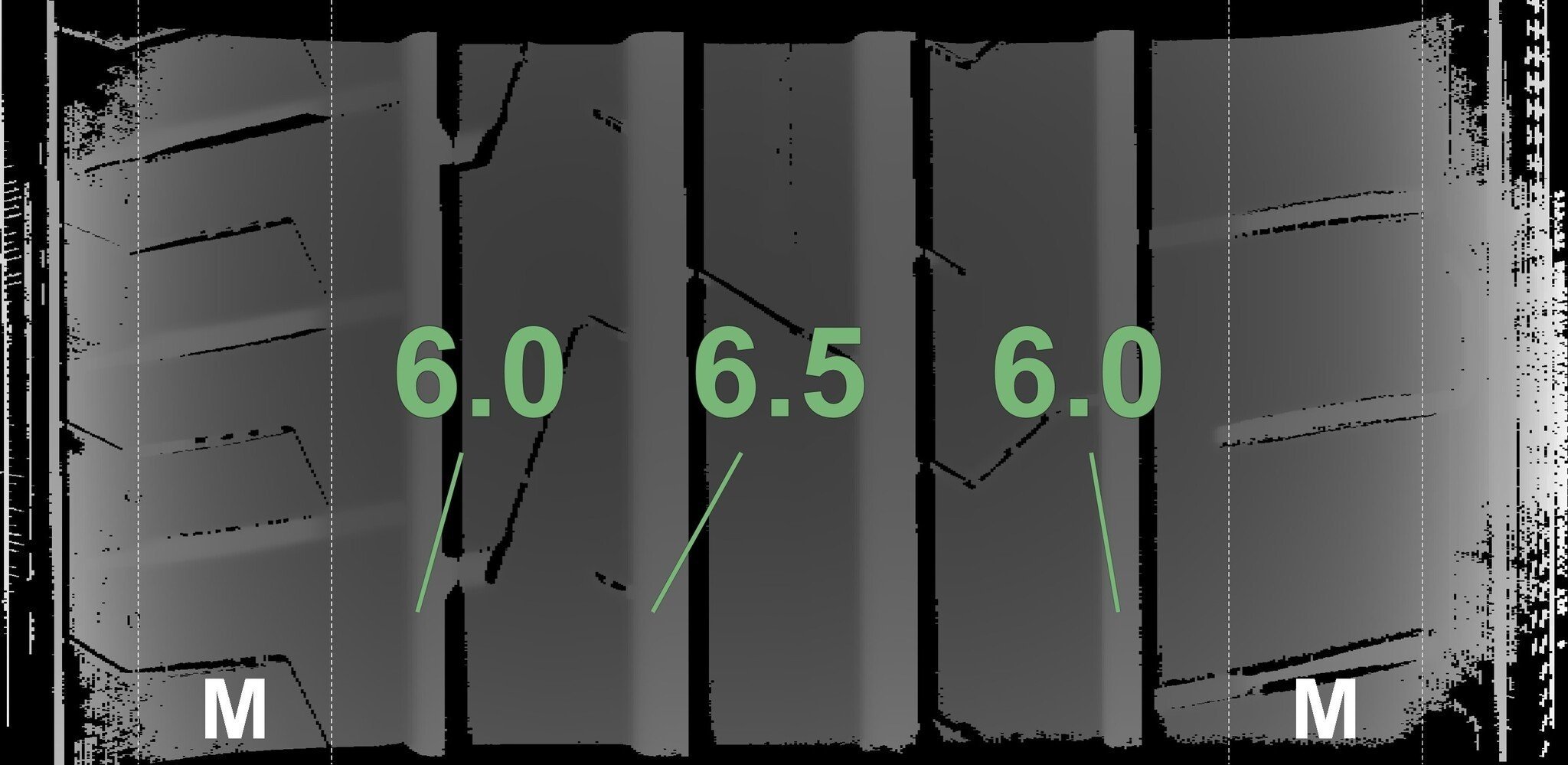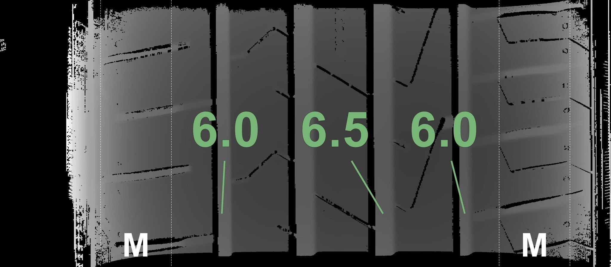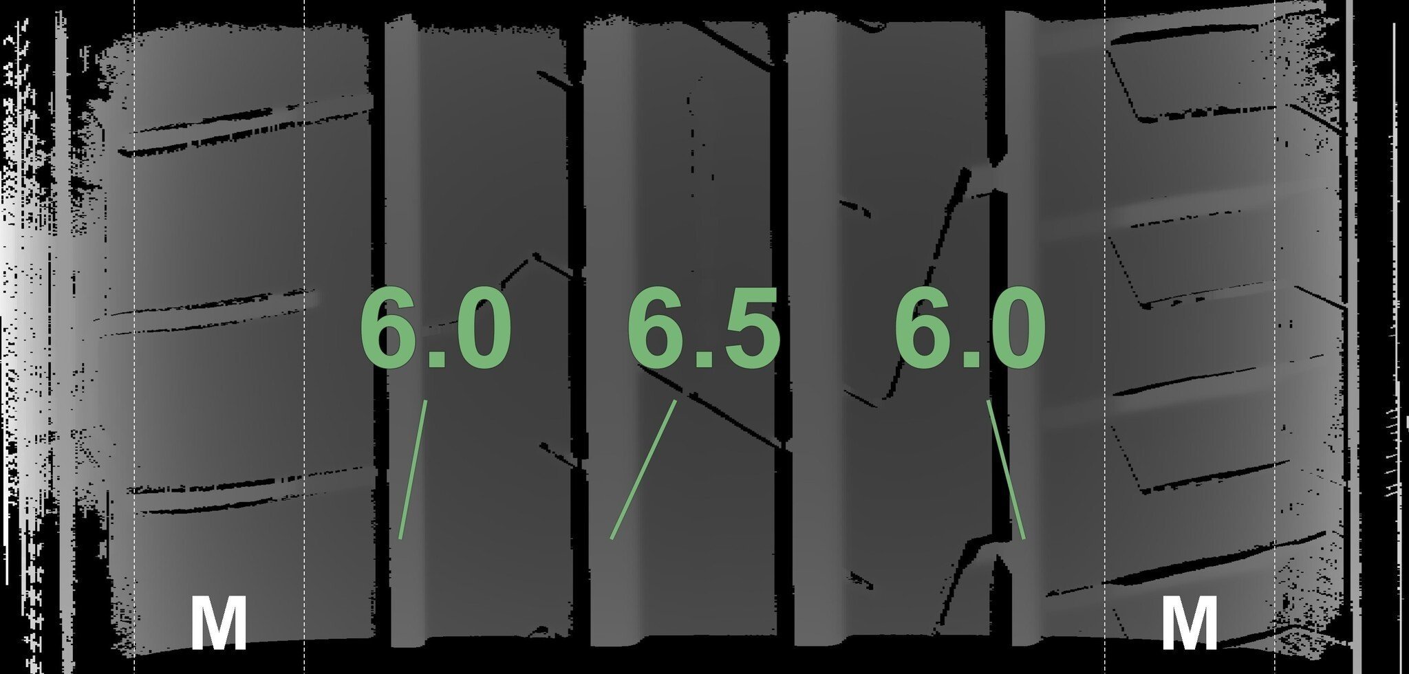 Die gemessenen Profiltiefen und Details der Felgen sind oben dargestellt.
