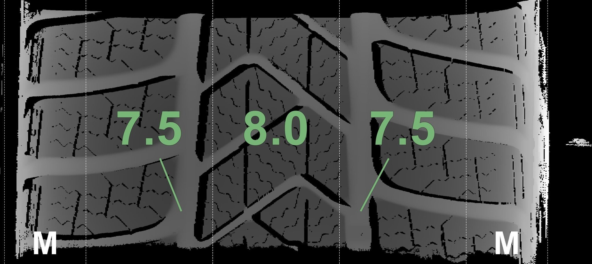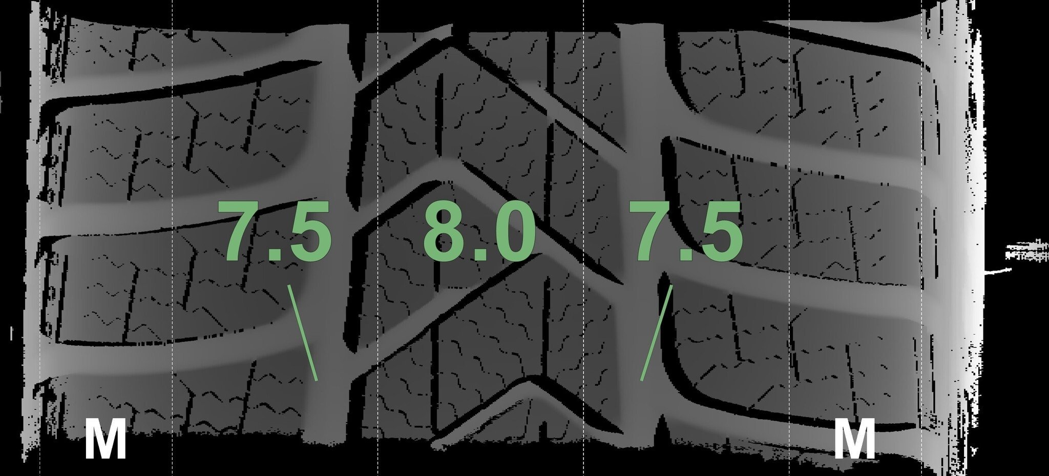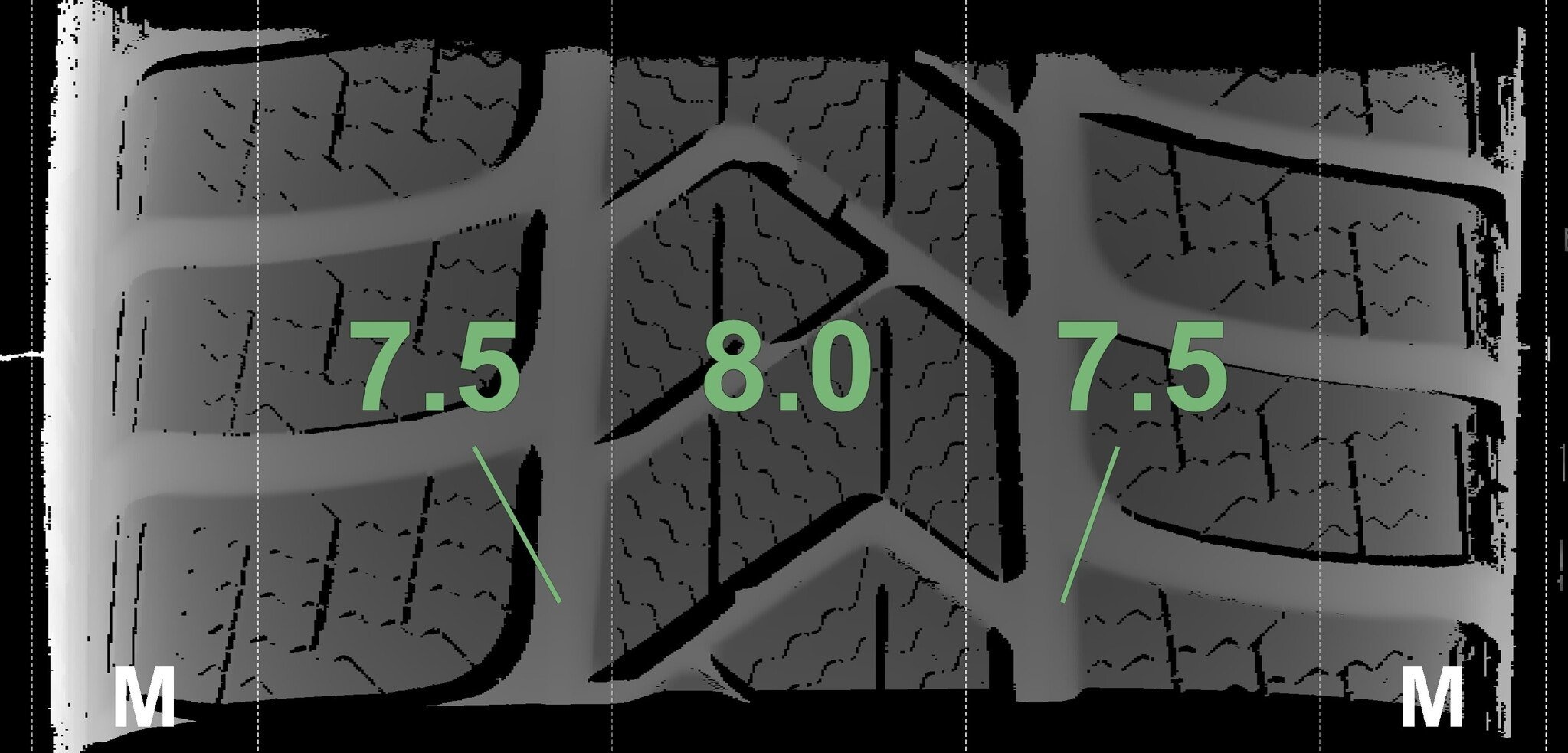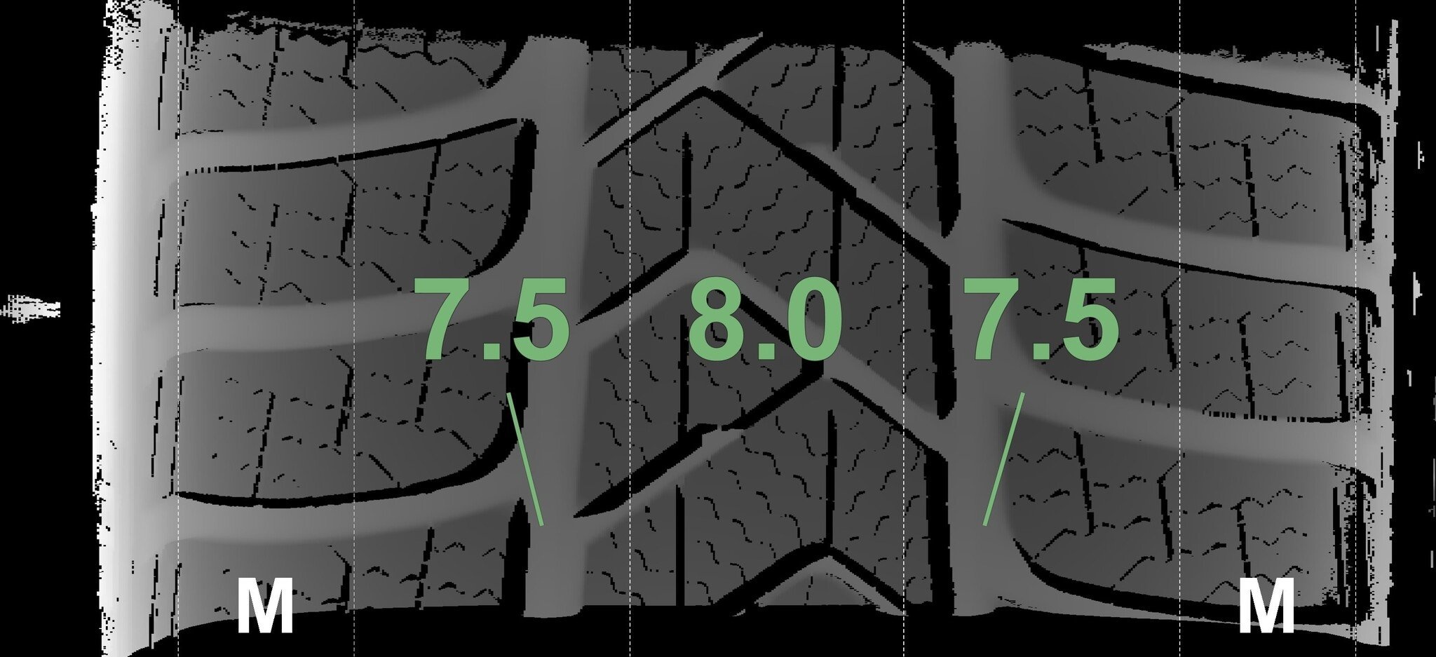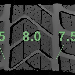 Die gemessenen Profiltiefen und Details zu den Felgen sind oben abgebildet.