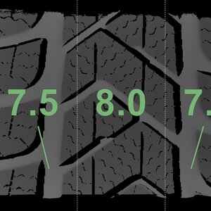 | Zustand | Profiltiefe | DOT | Vorderachse Links | Neu | 7,5 mm | 2125 |