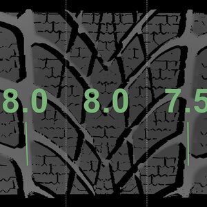 | Zustand | Profiltiefe | DOT | Vorderachse Links | Neu | 8,0 mm | 2021 |