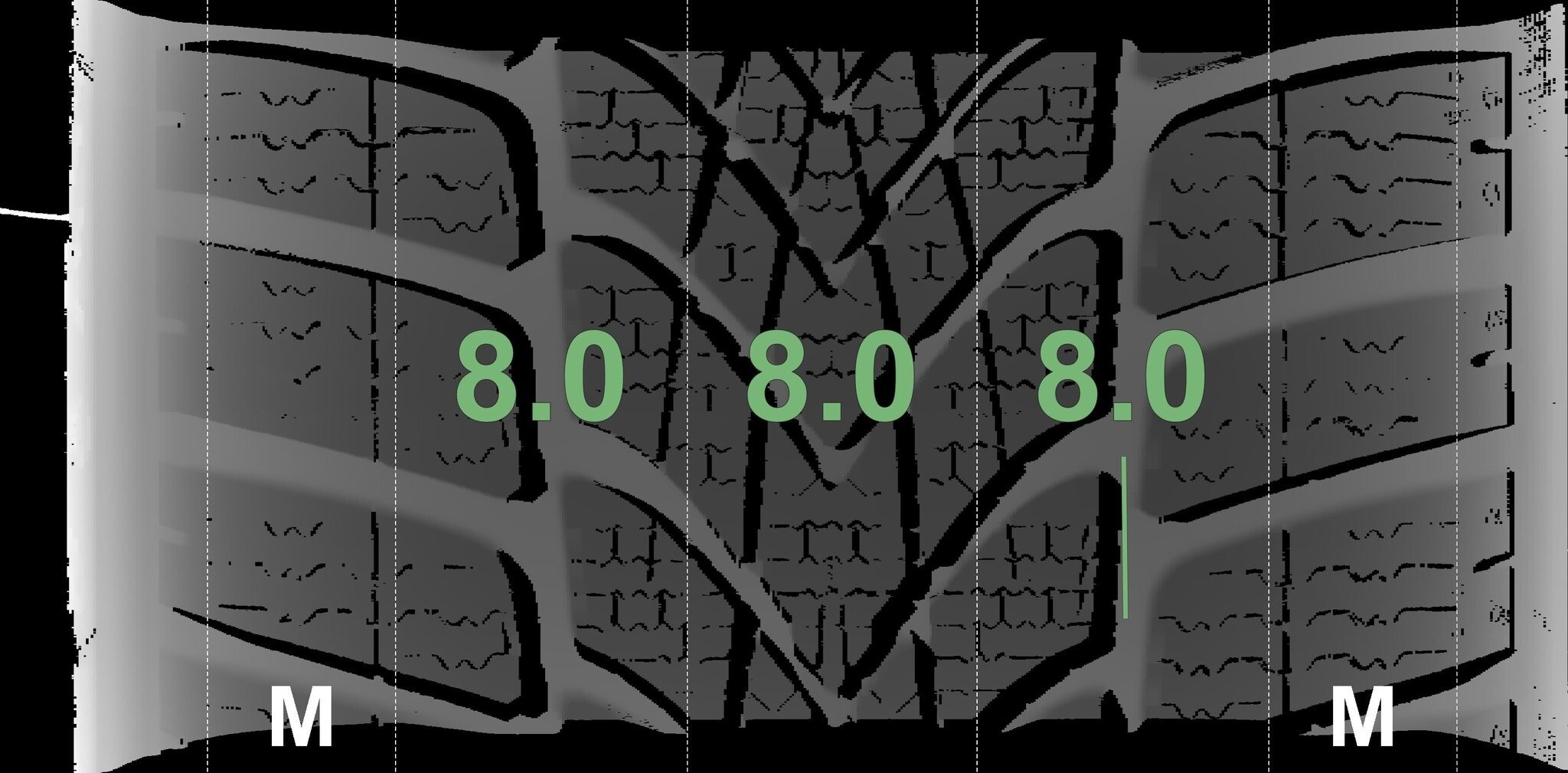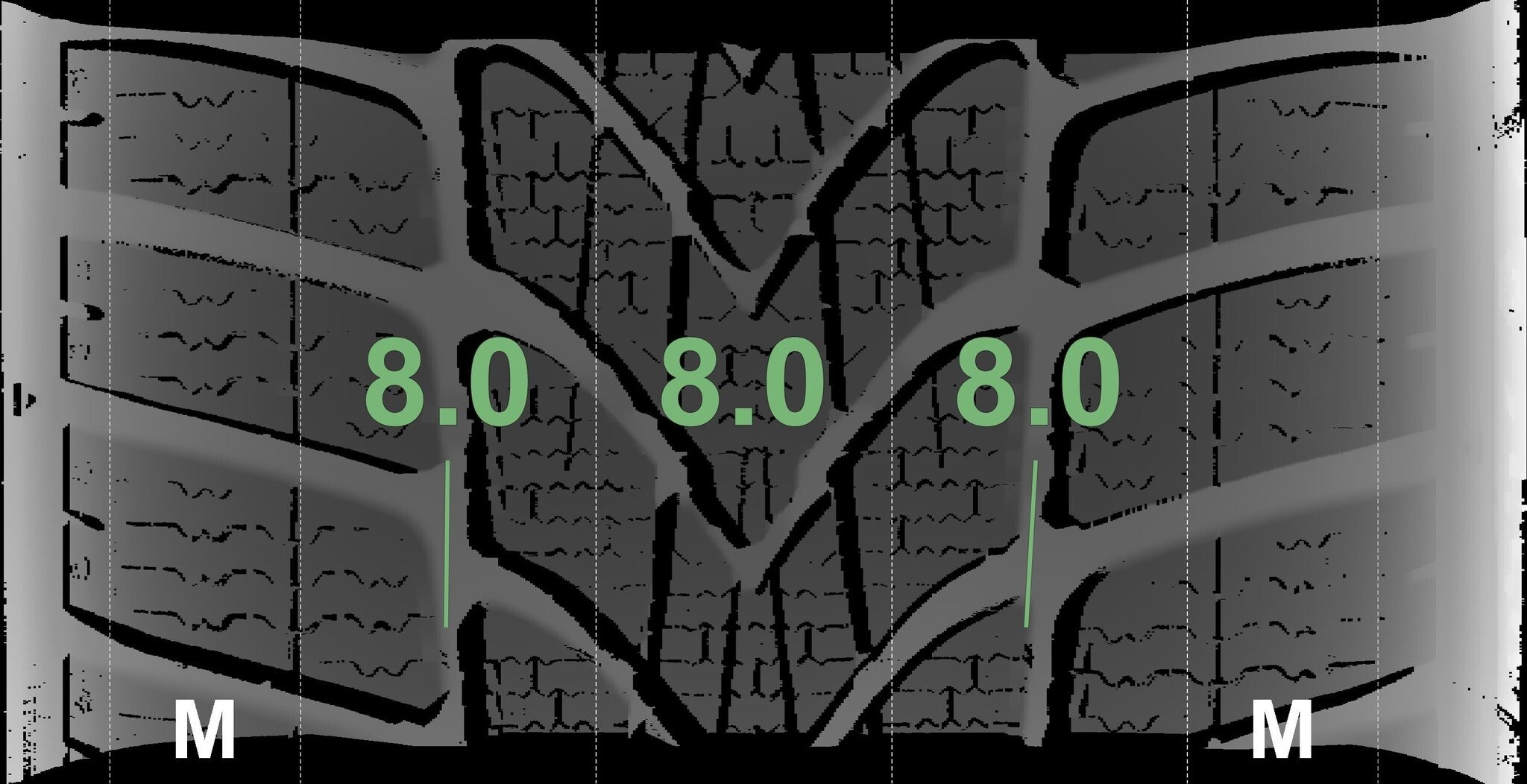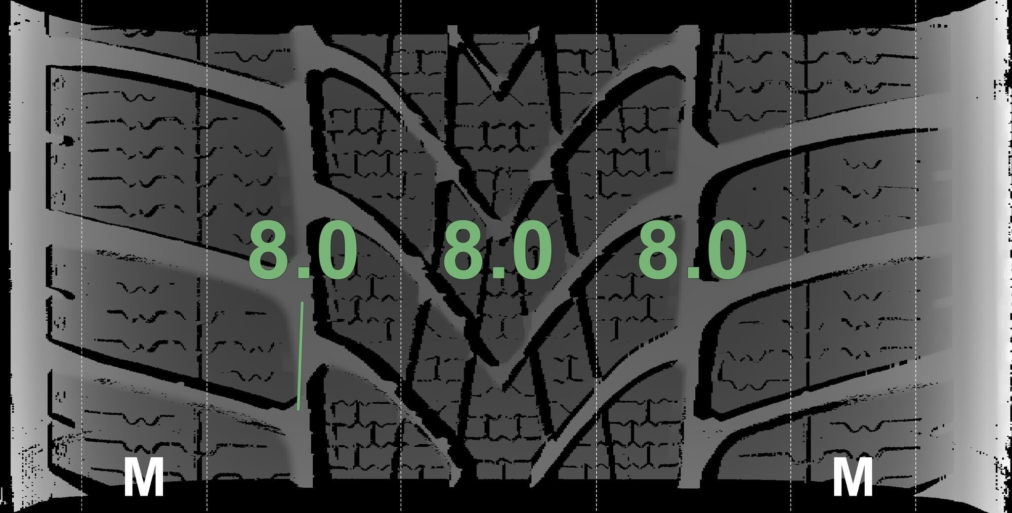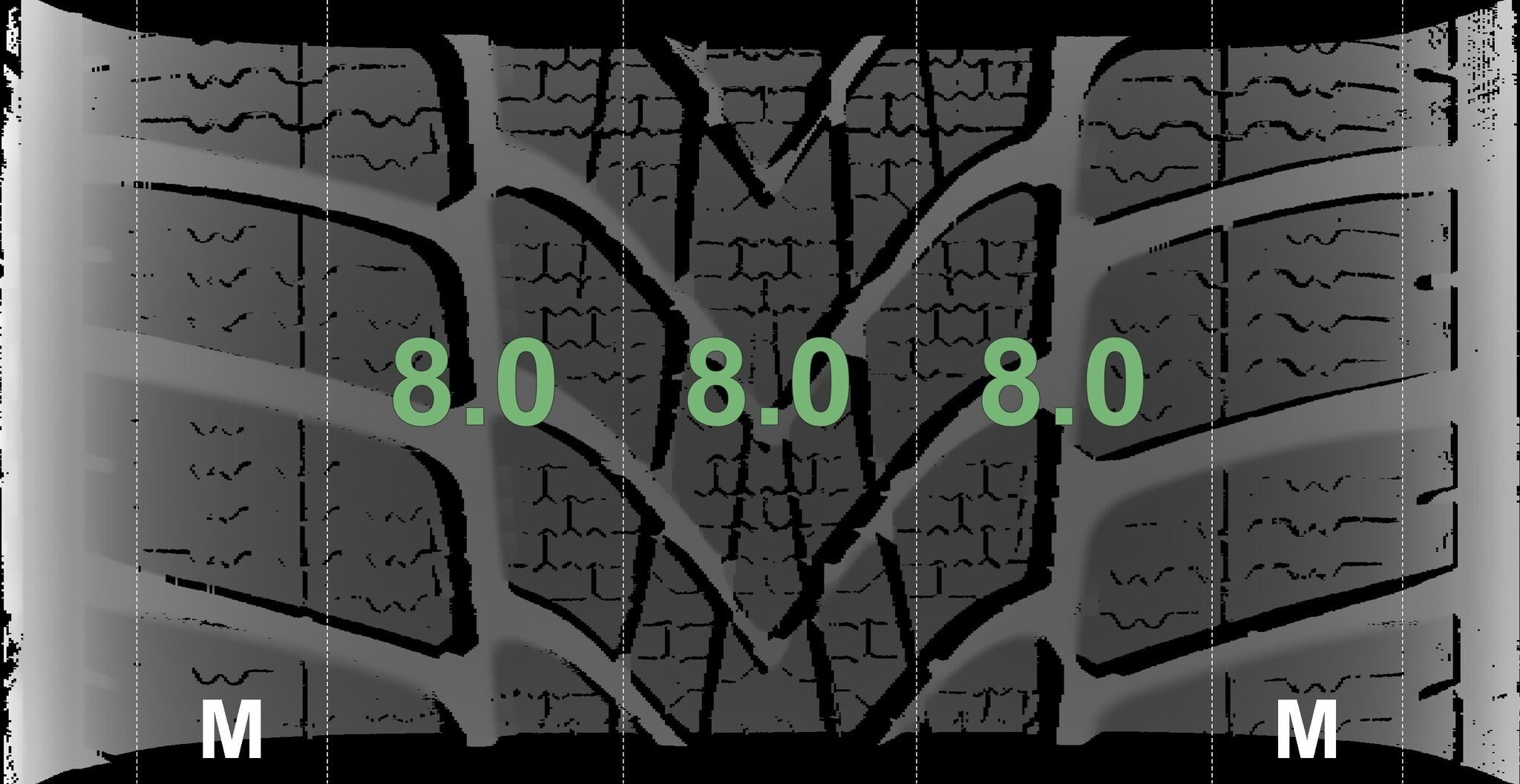 Zustand | Profiltiefe | DOT | Vorderachse Links | Neu | 8,0 mm | 3023 |